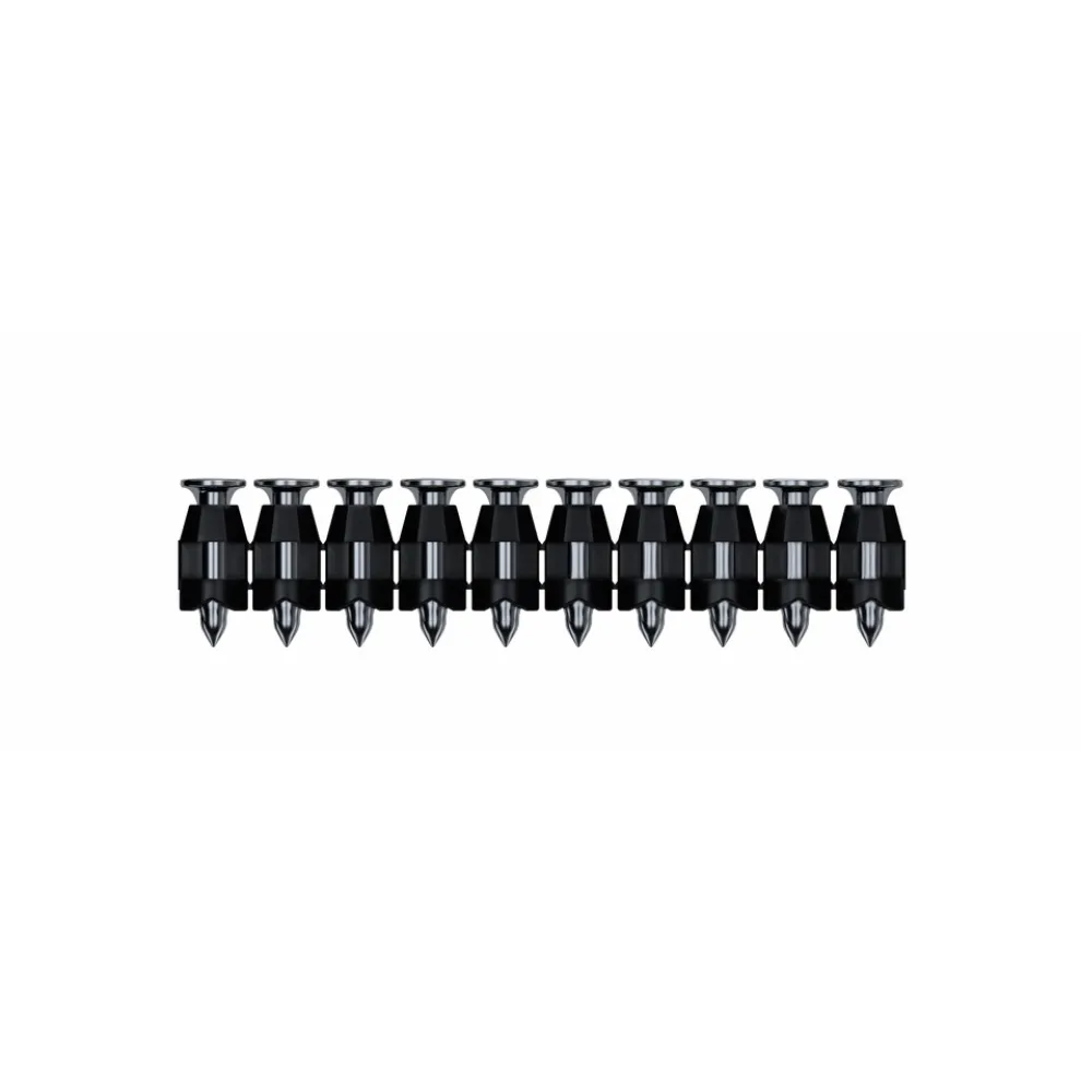 These Bosch Collated steel/metal nails are designed for use with the GNB18V-12 Cordless 18V Concrete Nailer. Ideal for framing, the fasteners attach metal tracks to steel. The Bosch 18V Concrete nailer comes with both a 22 Shot Collated magazine (an extra-capacity magazine, which can hold up to 44 Collated pins, is sold separately), and a single shot nose piece. The nails and the GNB18V-12 Concrete Nailer were tested and certified together (ICC). The Cordless nailer is an ideal replacement for gas-powered Concrete nailers, because it eliminates the need for consumable gas cartridges. The easy-to-use depth adjustment uses an intuitive sliding switch. The nails are available in three different lengths, from 1/2 in. to 3/4 in.
