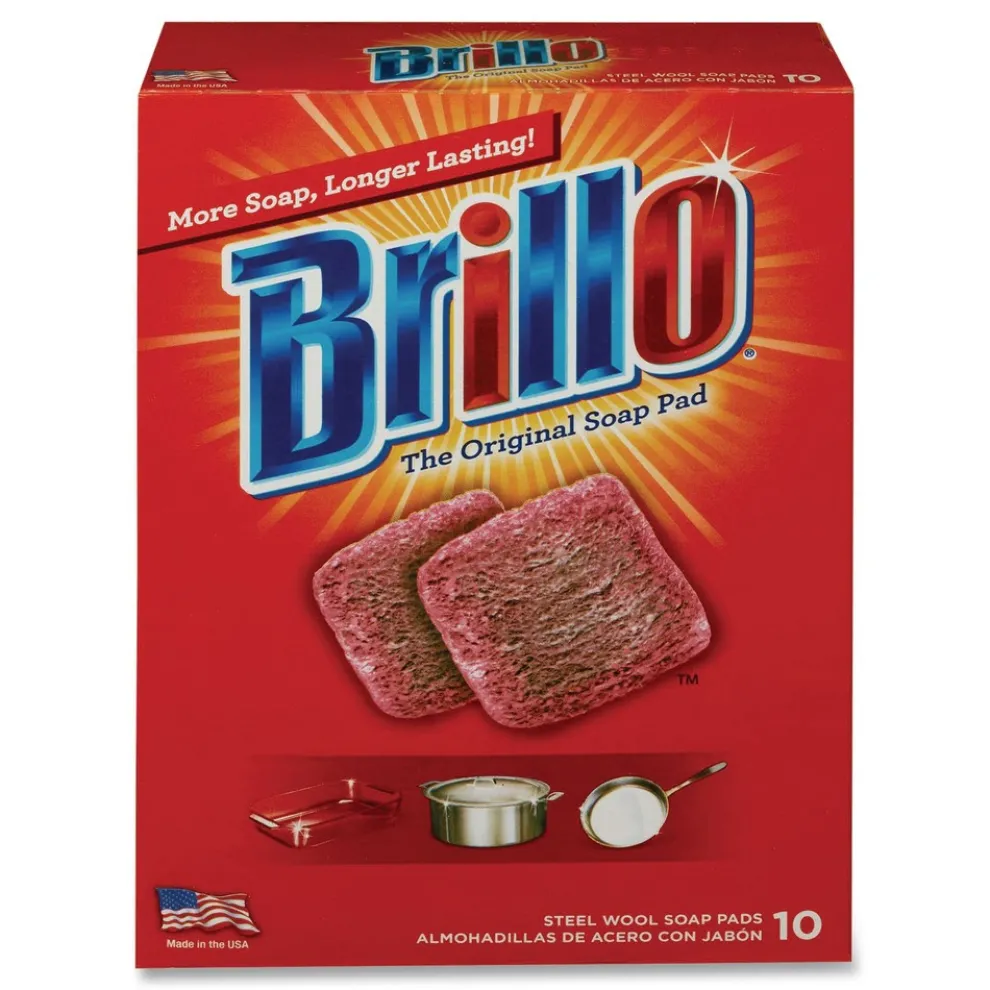 Powers out grease and grime. These soap pads are designed to remove the toughest grease and grime. The classic square shape reaches into corners to knock out tough messes, while its unique bonded edges help maintain its iconic shape. Give it a try. The anti-rust formula restores grills, pots and baking sheets to their former glory. That’s why Brillo is one of the most trusted names in household cleaning.