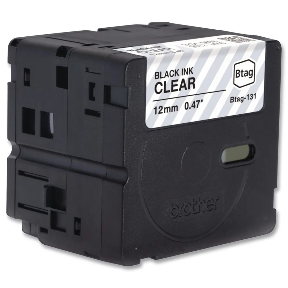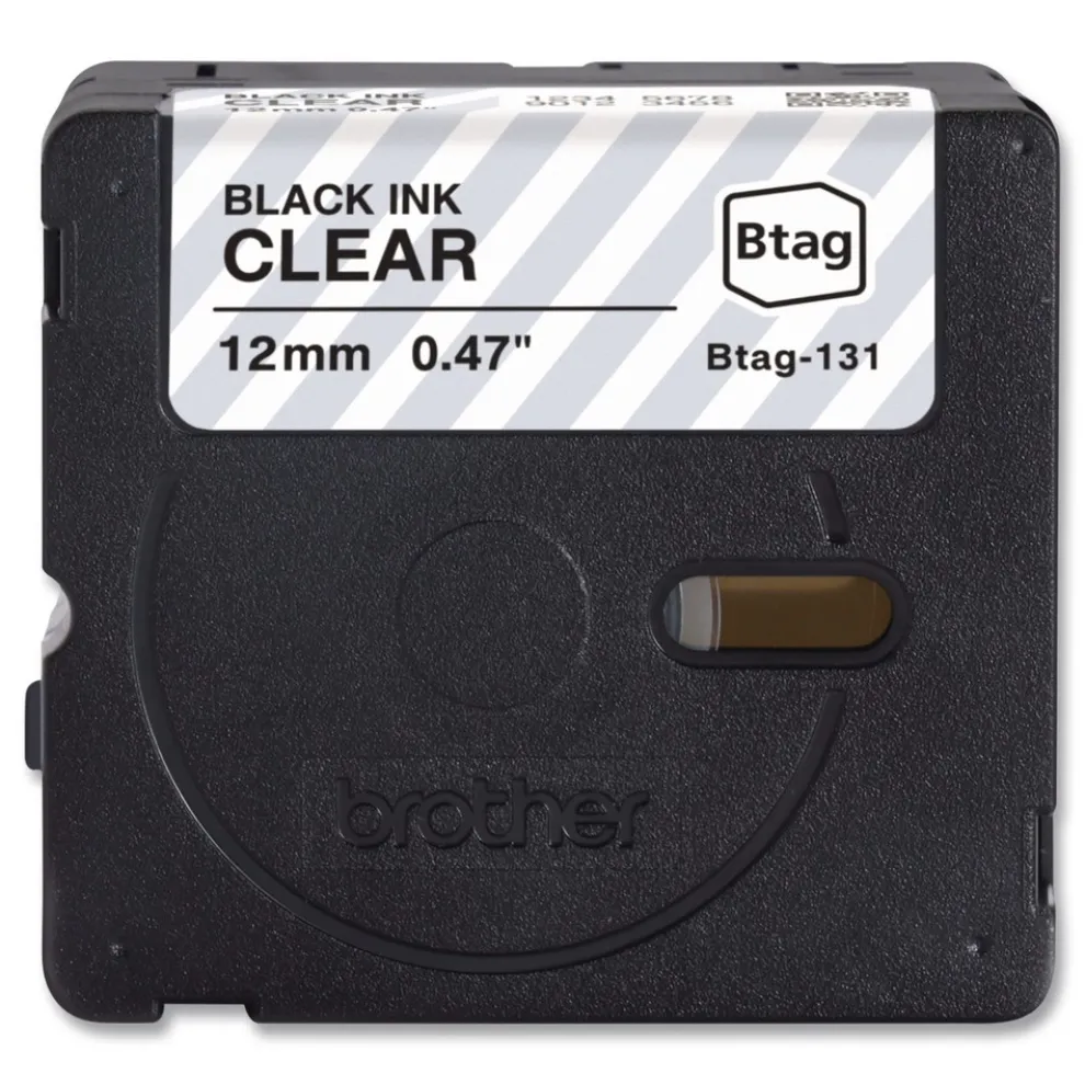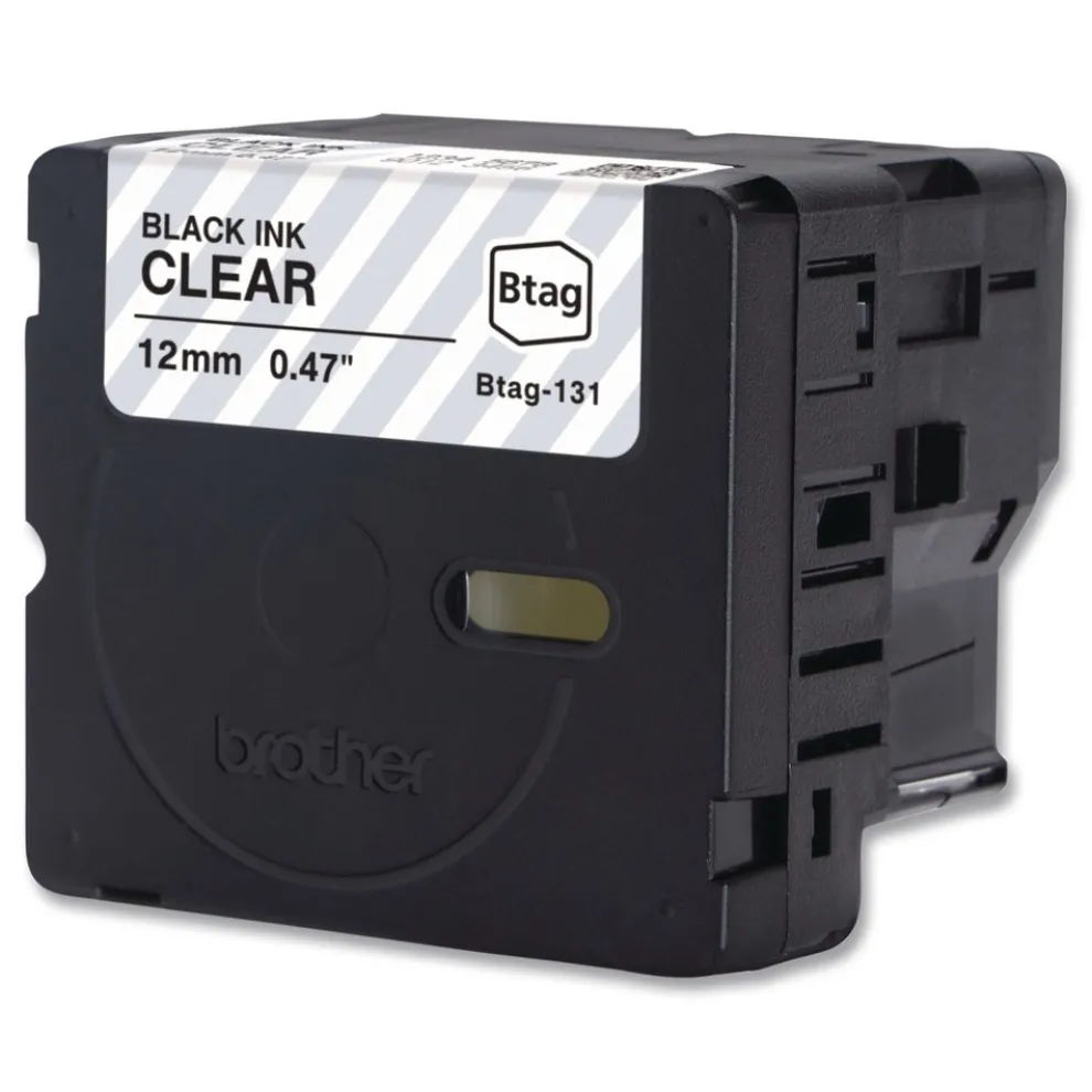 Brother P-Touch BTAG131 0.47 in. x 13.1 ft. Genuine P-Touch BTAG Label Tapes – Black on Clear