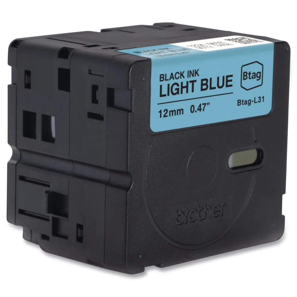 Brother P-Touch BTAGL31 0.47 in. x 13.1 ft. Genuine P-Touch BTAG Label Tapes – Black on Light Blue