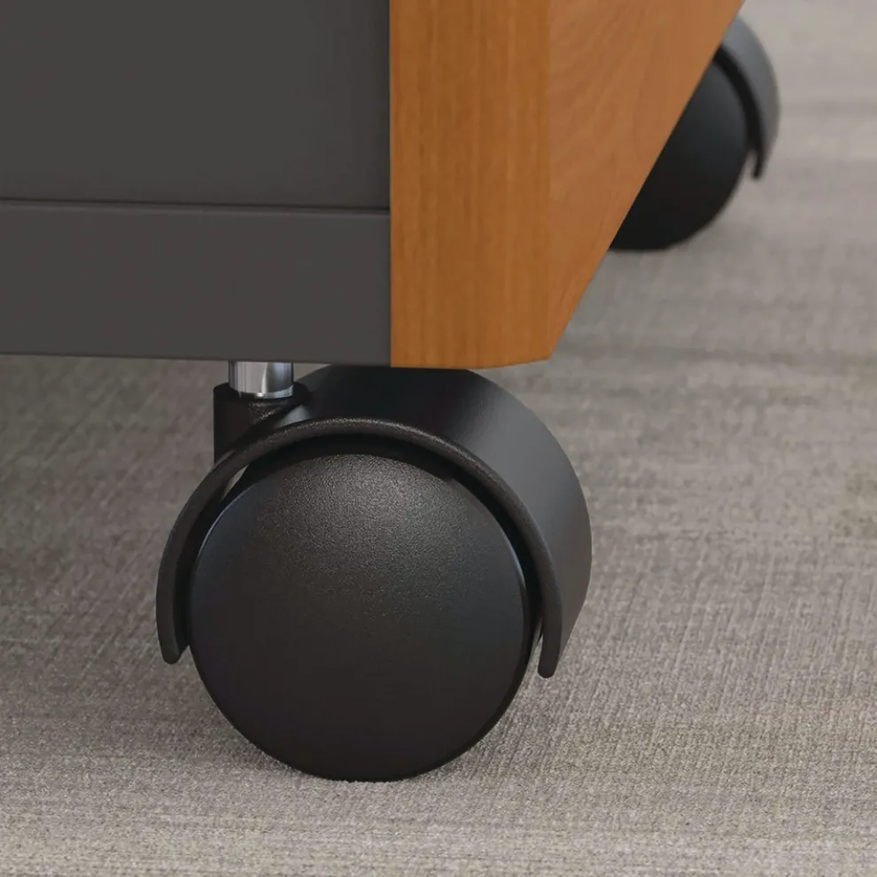 Create professional filing and storage space affordably with the Series C Collection 3 Drawer Mobile Pedestal for classic styling with clean lines. The Mobile Pedestal features two drawers for storage and one file drawer with full-extension ball bearing slides to keep your files at your fingertips. This component offers a single lock for file drawer and accommodates letter, legal or A4 files. The 3-Drawer Mobile Pedestal rolls conveniently under all Series C 36W, 48W, 60W, and 72W Desk Surfaces to minimize your office footprint. Includes dual-wheel hooded casters, 2 swivel – 2 fixed and moves to wherever you need it most. This unit is constructed with 100 percent thermally fused laminate for durability and superior resistance to scratches and stains.
