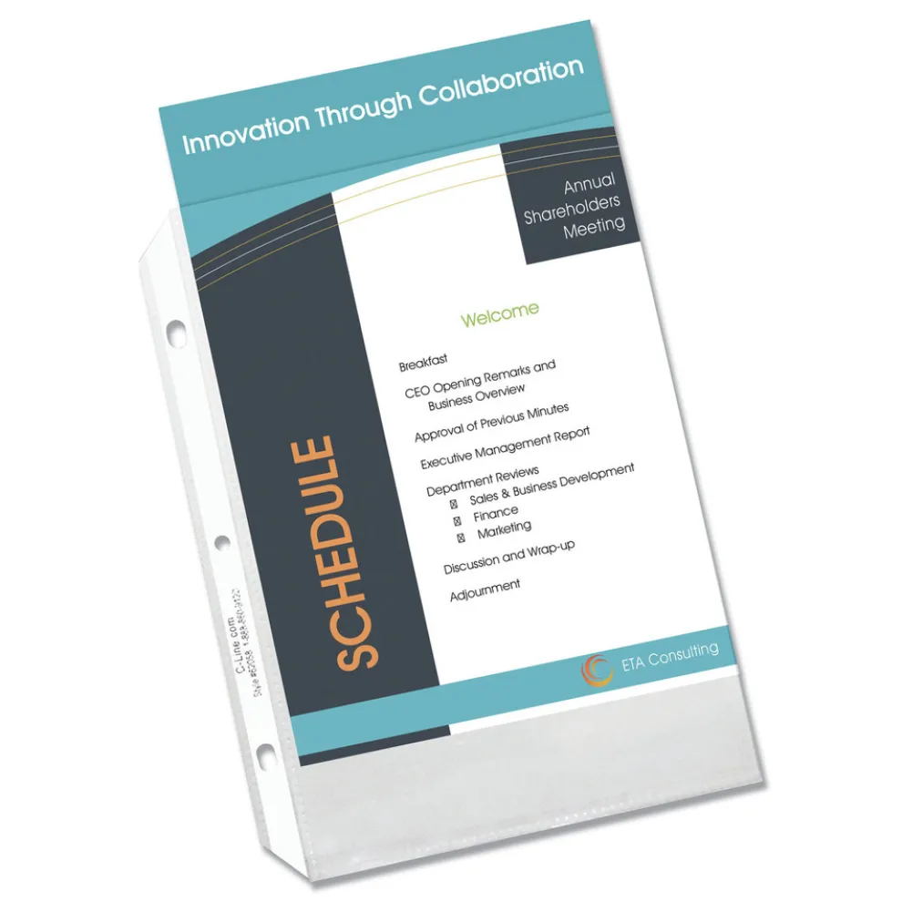 C-Line 62058 3-Hole Punched Top Load 5.5 in. x 8.5 in. Insert Heavy-Duty Polypropylene Sheet Protectors – Clear Front (50/Box)