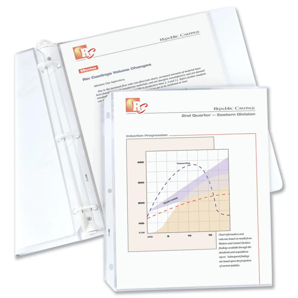 C-Line 62027 3-Hole Punched Top Load 8.5 in. x 11 in. Insert Medium-Duty Standard Weight Polypropylene Sheet Protectors – Clear (100/Box)