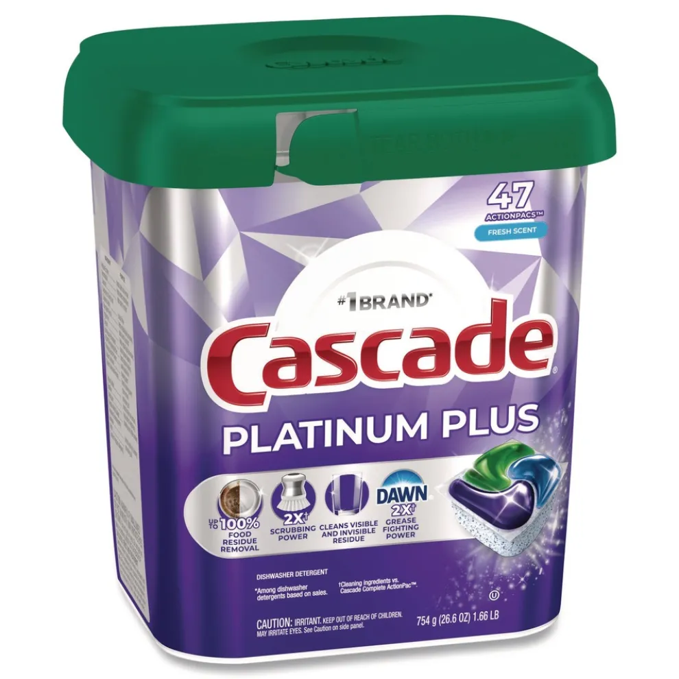 You can skip the pre-rinse, skip the soak, skip the scrub, and dare to dish differently. Just scrape your dishes and load them into your dishwasher with Platinum Plus to get a superior, sparkling clean, saving you time, effort, and energy vs. handwashing. Get virtually spot-free gleaming glassware, dazzling dishes, and pristine pots and pans with Cascade Platinum Plus Dishwashing ActionPacs.