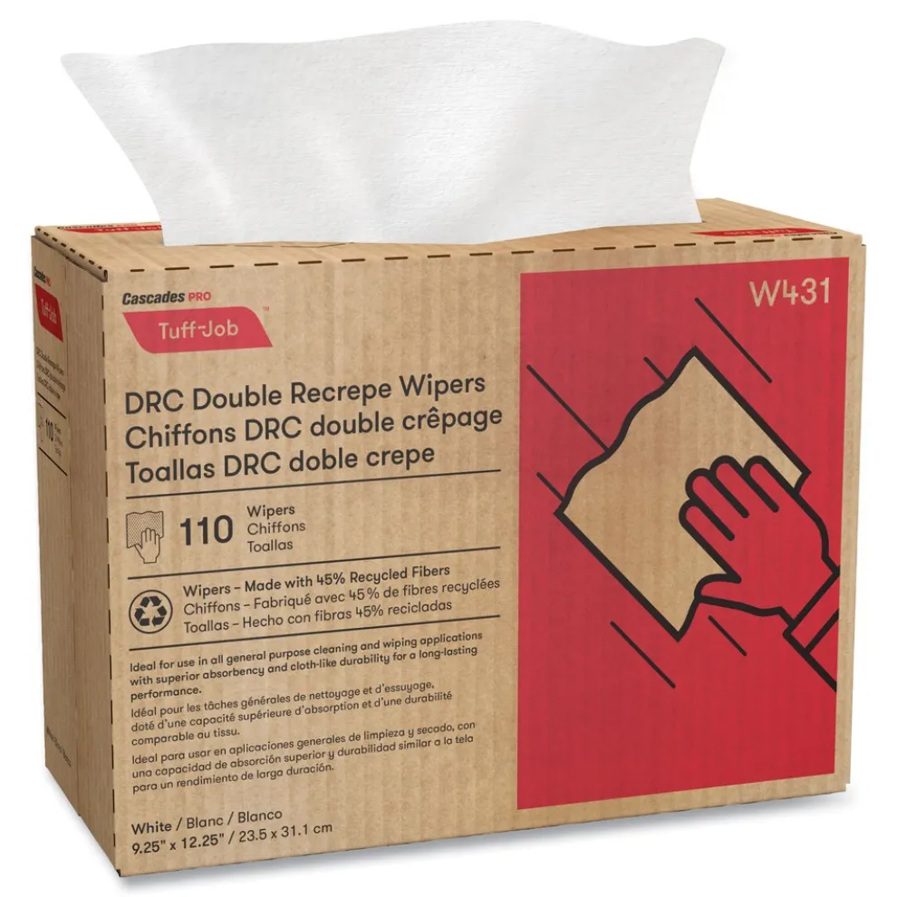Cascades PRO W431 9.25 in. x 12.5 in. Tuff-Job Double Recrepe Wipers – White (12/Carton)