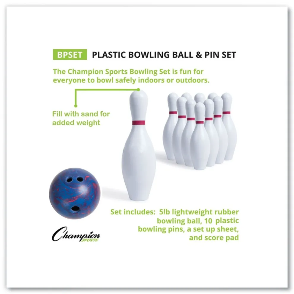Champion Sports BPSET Plastic/Rubber Bowling Set – White (1 Set)