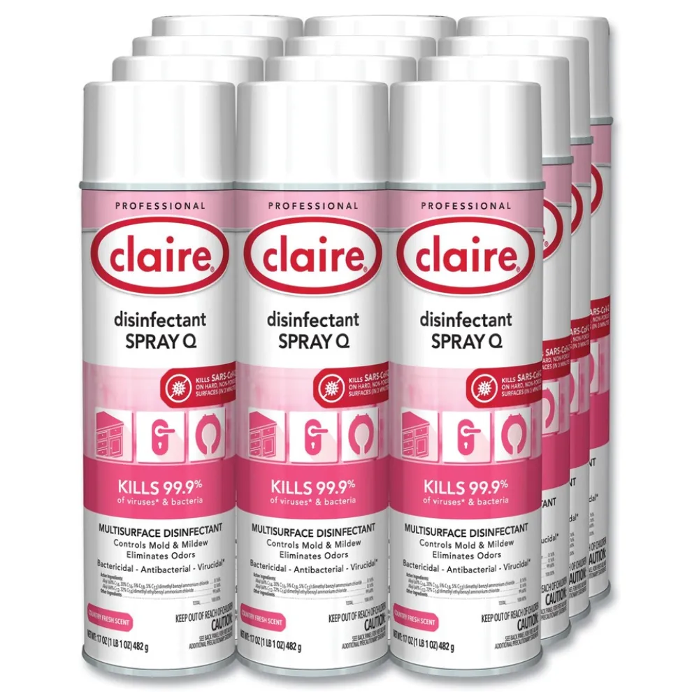 Claire CL1001 17 oz. Aerosol Spray Q Disinfectant – Country Fresh Scent (12/Carton)