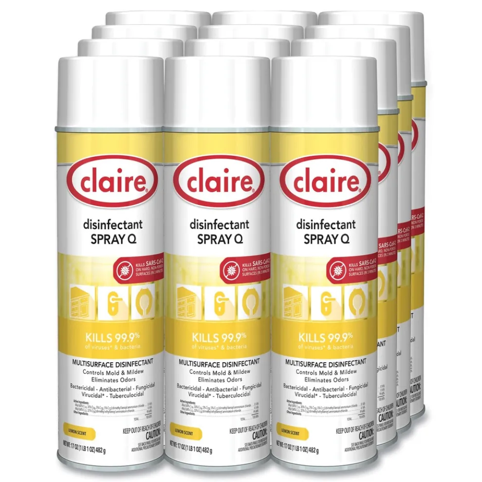 Claire CL1002 17 oz. Aerosol Spray Spray Q Disinfectant – Lemon Scent (12/Carton)
