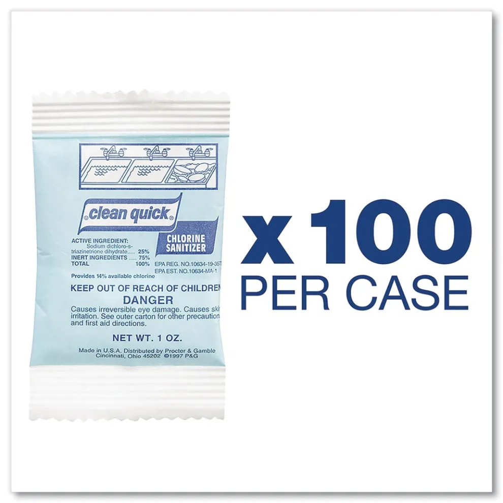 Clean Quick 02584 1 oz. Packet Powdered Chlorine-Based Sanitizer (100/Carton)