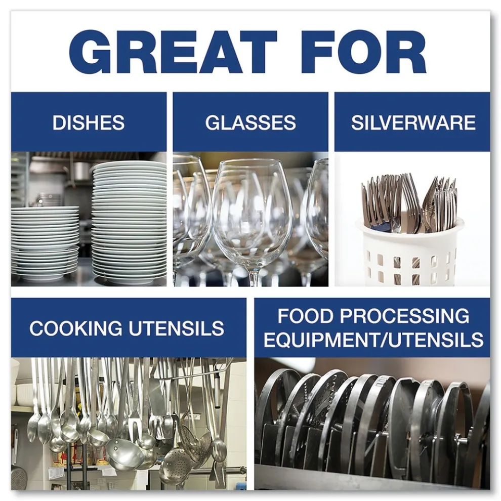 Chlorine-based, no-rinse third-sink sanitizer is ideal for food-processing equipment, glasses, utensils and more.. Dries clean, without spots or streaks.