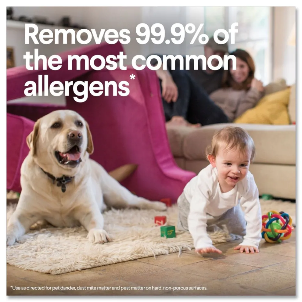 These all-purpose disposable wipes remove common allergens germs and messes on surfaces like kitchen counters, bathroom surfaces and more