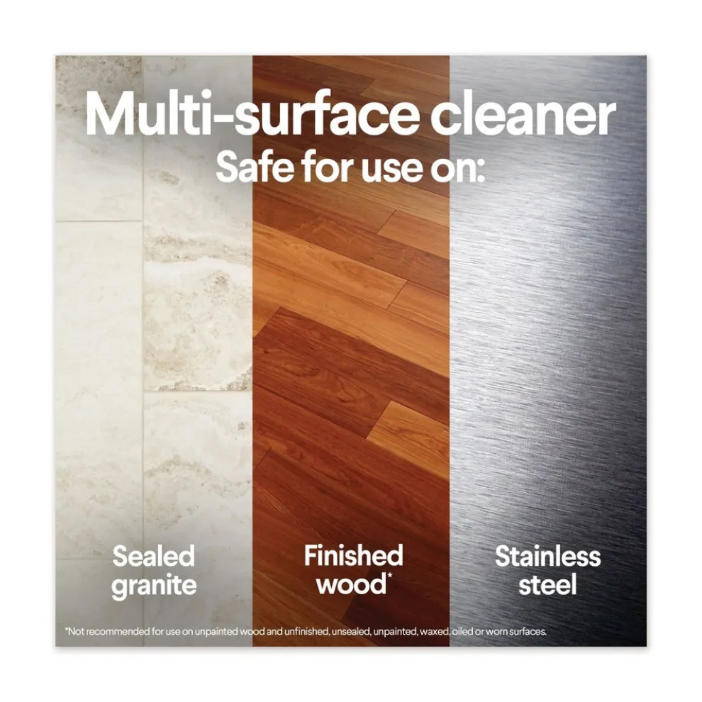 Safe for finished wood, sealed granite and stainless steel and on non-food-contact surfaces in the home, office, classroom, pet area, dorm and locker room