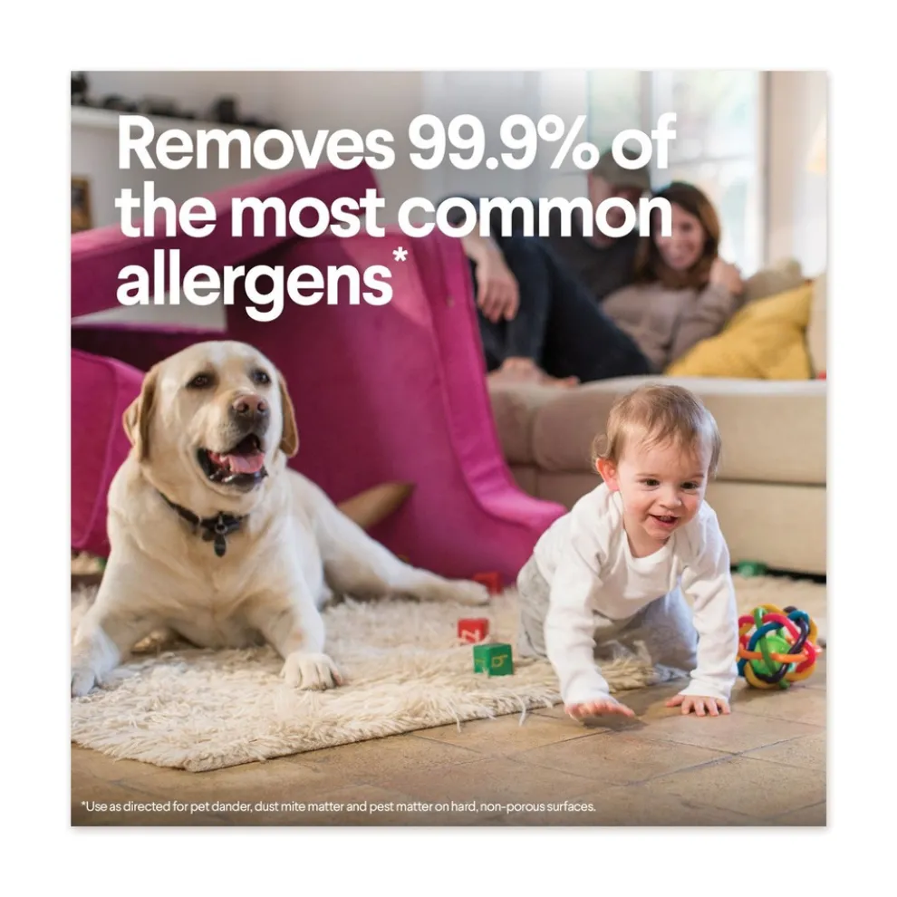 All-purpose disposable wipes remove common allergens, germs and messes on surfaces like kitchen counters, bathroom surfaces and more