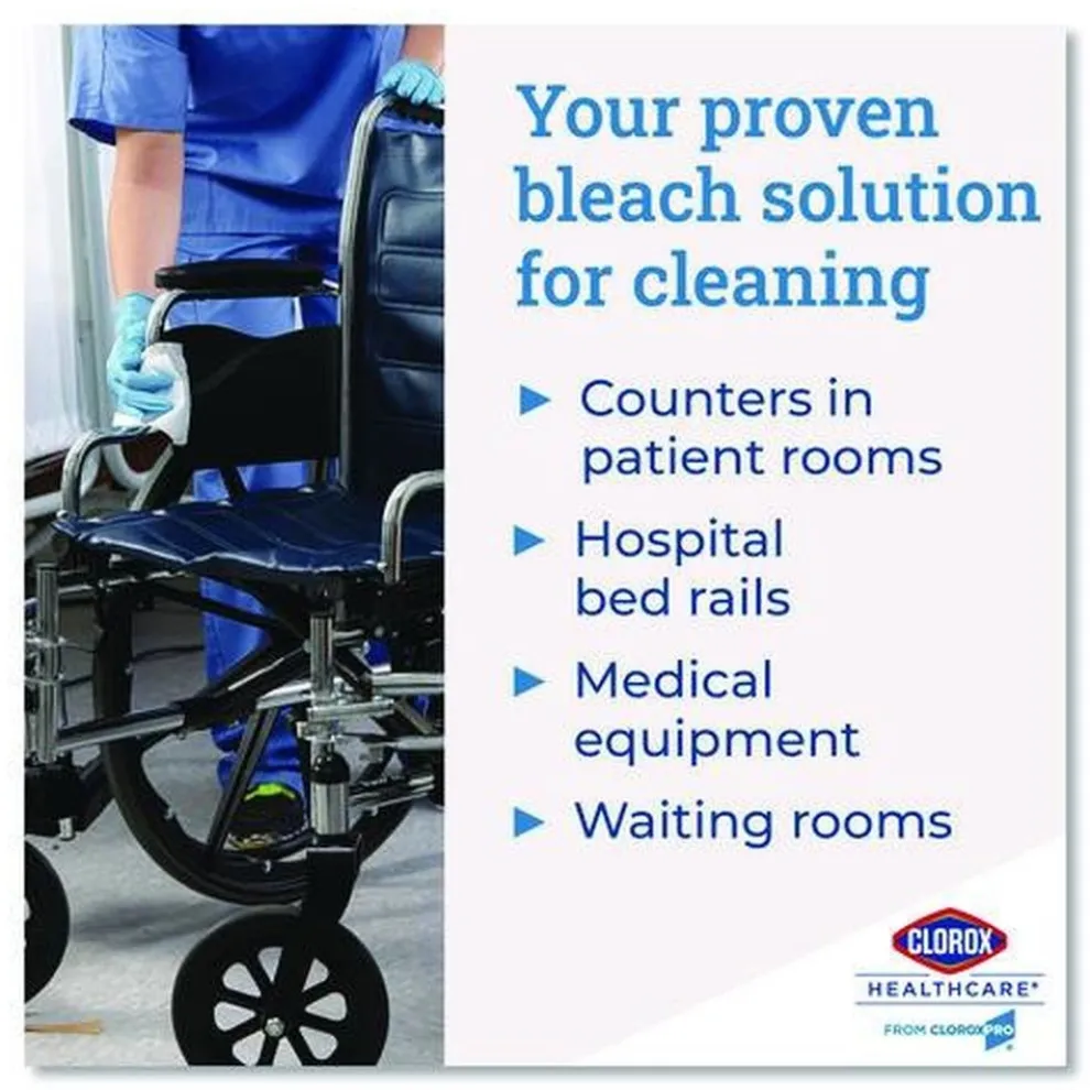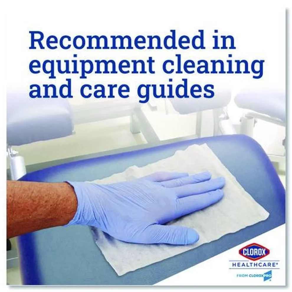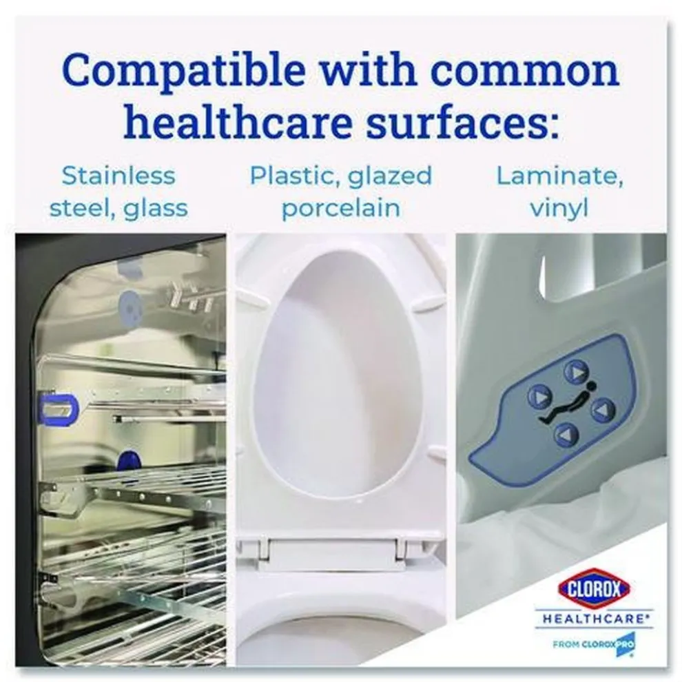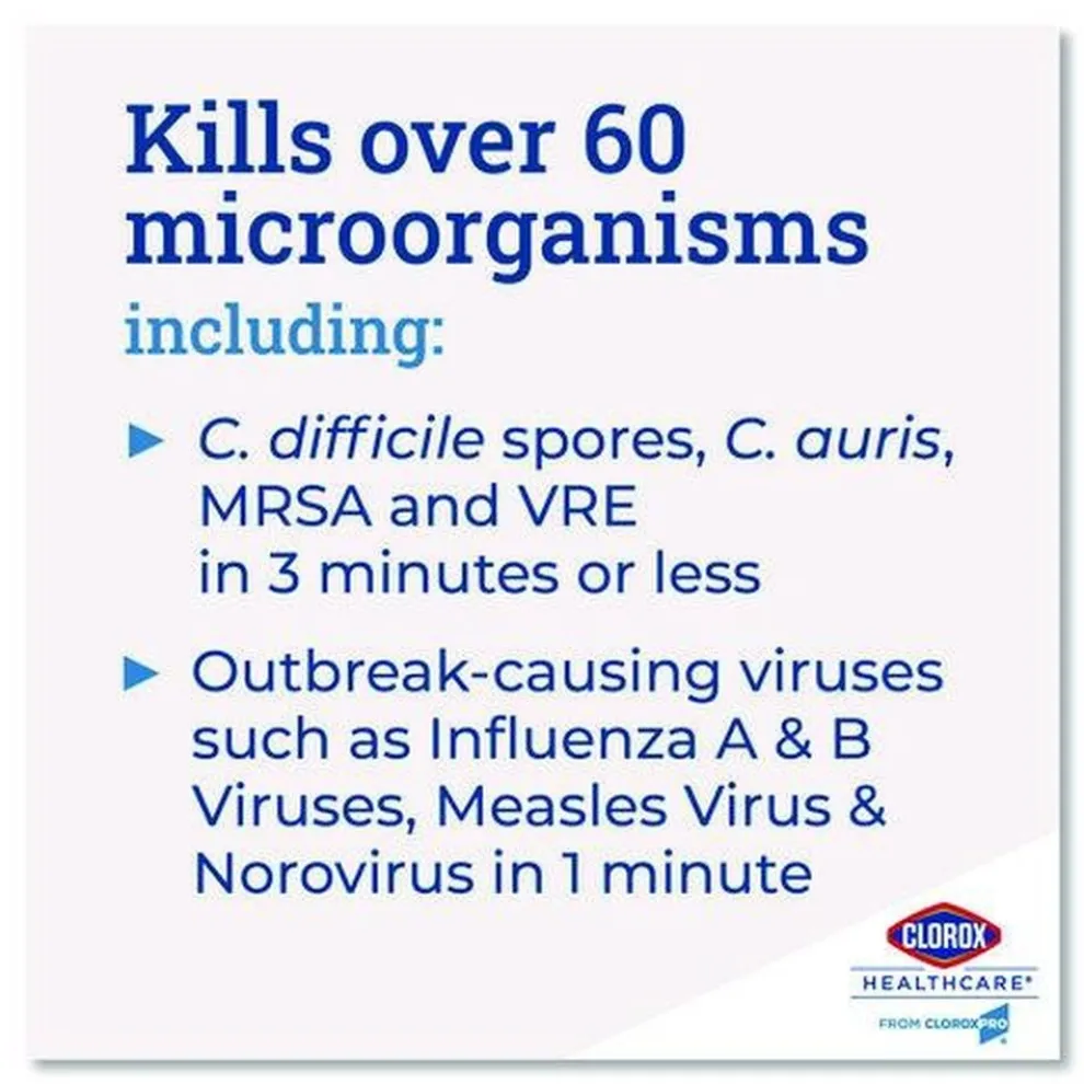 Your proven bleach solution for cleaning. Clorox Healthcare Bleach Germicidal Wipes kill C. difficile and C. auris in three minutes and 58 other microorganisms in one minute or less, including outbreak causing viruses, emerging viral pathogens, MRSA and VRE when used as directed. With superior surface compatibility on a wide range of hospital surfaces, these disinfecting wipes help you cover more square footage per wipe with fast contact times and greater wetness surface coverage than the leading competitor. The phosphate free formula is optimized to be easy on surfaces and leaves less residue behind. Use in healthcare settings including hospitals, medical facilities, outpatient facilities and long term care facilities. Follow special instructions for cleaning prior to disinfection.