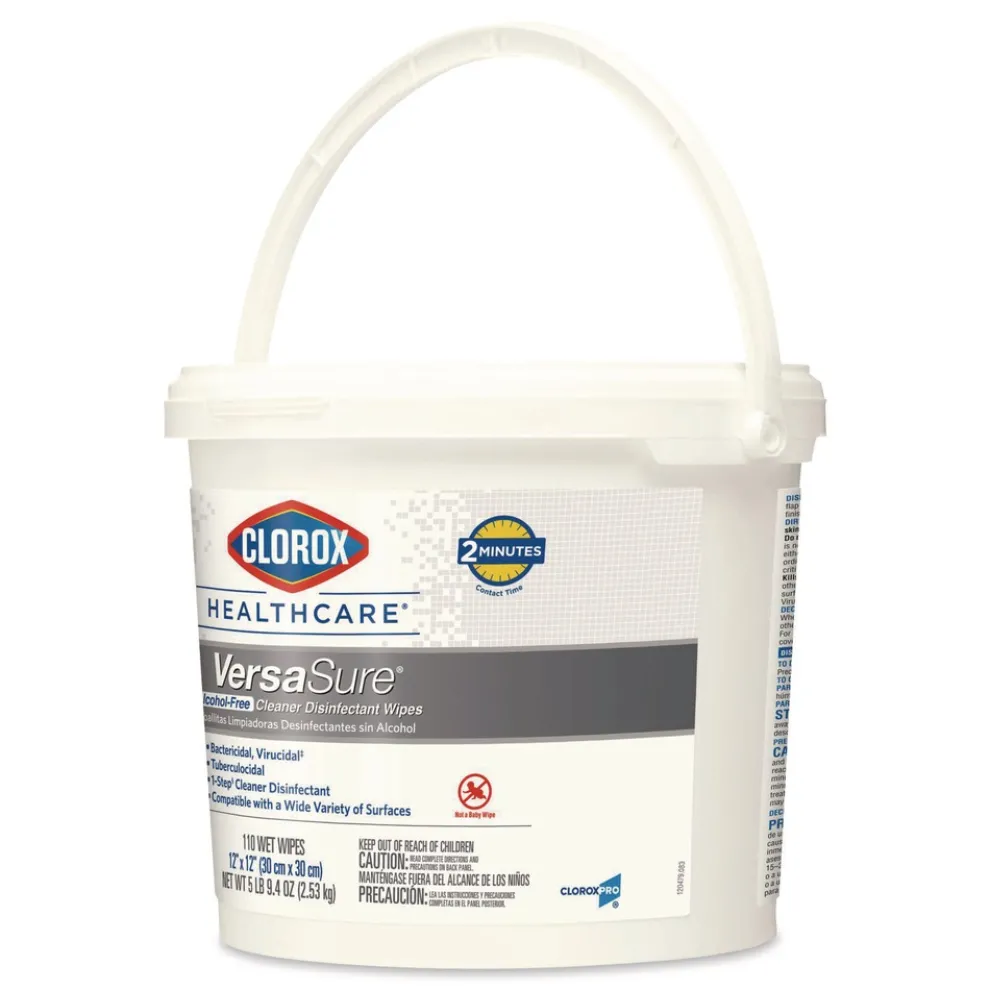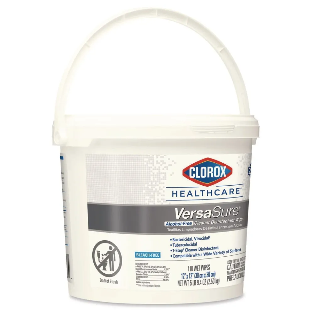 Clorox Healthcare VersaSure Cleaner Disinfectant Wipes kill over 40 pathogens quickly on a broad range of surfaces. These strong and durable clothlike wipes are your alcohol free solution to cleaning and disinfecting. VersaSure wipes are EPA registered to kill pathogens on hard surfaces in as fast as 30 seconds for most bacteria and viruses, including mumps, measles, MRSA and tuberculosis. These one step disinfecting wipes meet EPA efficacy testing requirements for hospital disinfection, making them great for daily use in your healthcare facility. Designed for patient and staff comfort, the alcohol free quat formula is made with no harsh chemical odors, fumes or added fragrances. The nonwoven wipe does not leave lint on surfaces, and the larger wipe covers more surface area with less effort. Intended for use in healthcare settings.