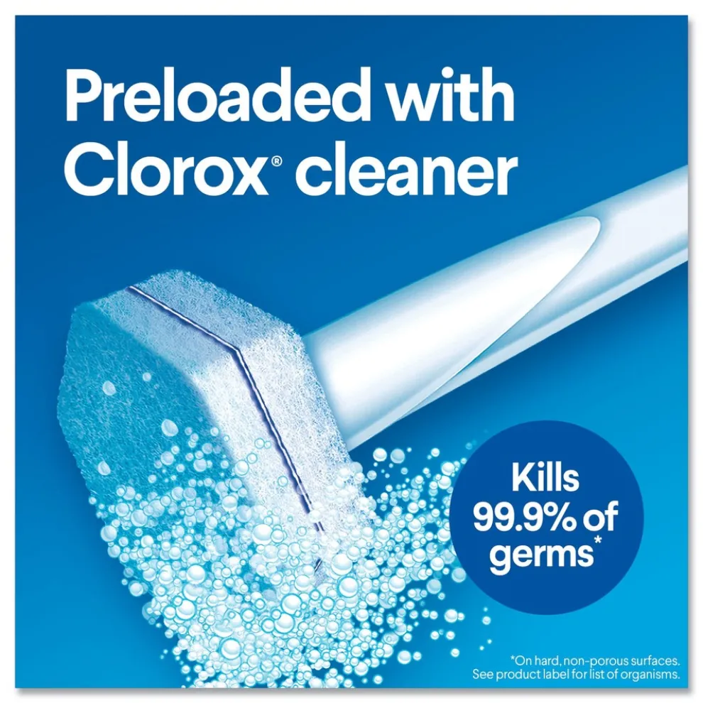 Preloaded with Clorox cleaner these sponges deep clean and remove stains while eliminating germs to make your toilet bowl feel like new