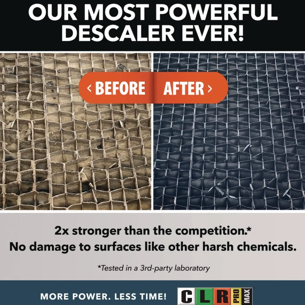 Introducing our most powerful cleaning solutions ever. Engineered to eliminate the heaviest build-up to restore your equipment and surfaces back to its original state. Formulated specifically to outperform the competition, CLR PRO MAX will be your new go-to.