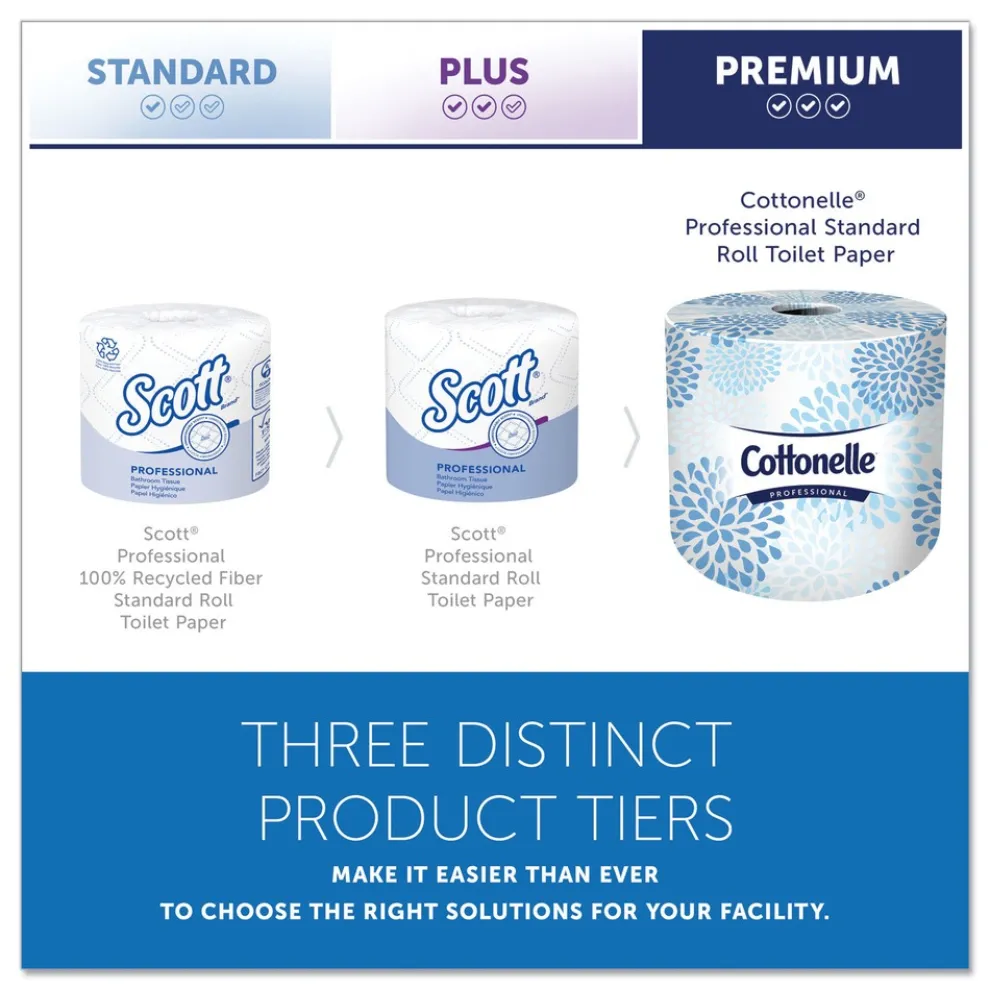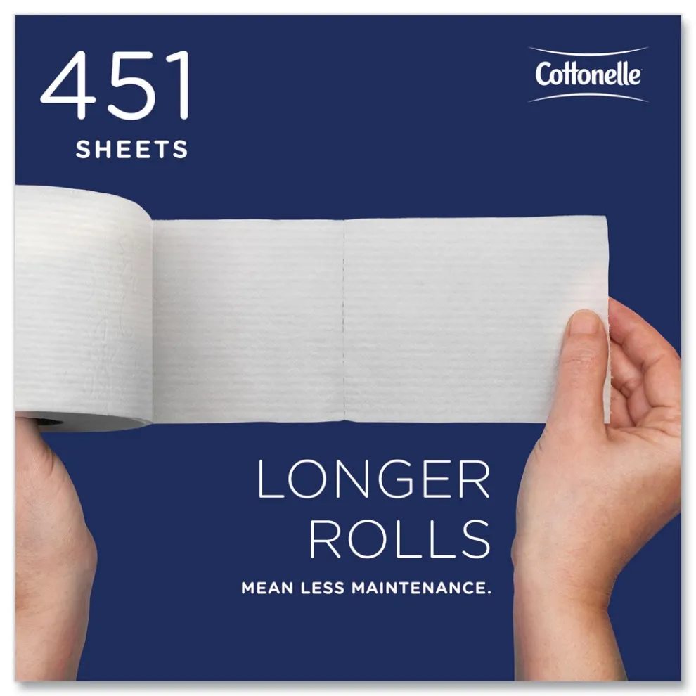More than ever, hygiene plays a significant role in employee, guest, and tenant comfort and satisfaction. You want to make a great impression for your business—even in the washroom. Cottonelle is the premium choice, offering a soft feel and a quality experience for all of your guests. This superior quality bath tissue is a good choice for upscale restrooms in a variety of environments, including hospitality and guest rooms, restaurants, retail, small businesses and much more. Each white bulk toilet paper roll is individually wrapped in attractive packaging, keeping the rolls clean and hygienic. It meets EPA minimum standards for recycled content. With a top restroom brand like Cottonelle, it’s easy to bring the comforts of home to your workplace, while providing the ultimate hygienic protection. When you want to give your guests a touch of washroom luxury away from home, choose Cottonelle Toilet Paper.