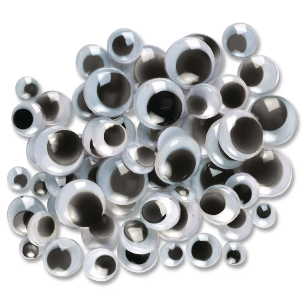 (100/Pack) 0.27 in., 0.39 in., 0.47 in., 0.59 in. Wiggle Eyes Assortment – Black – PAC344602R