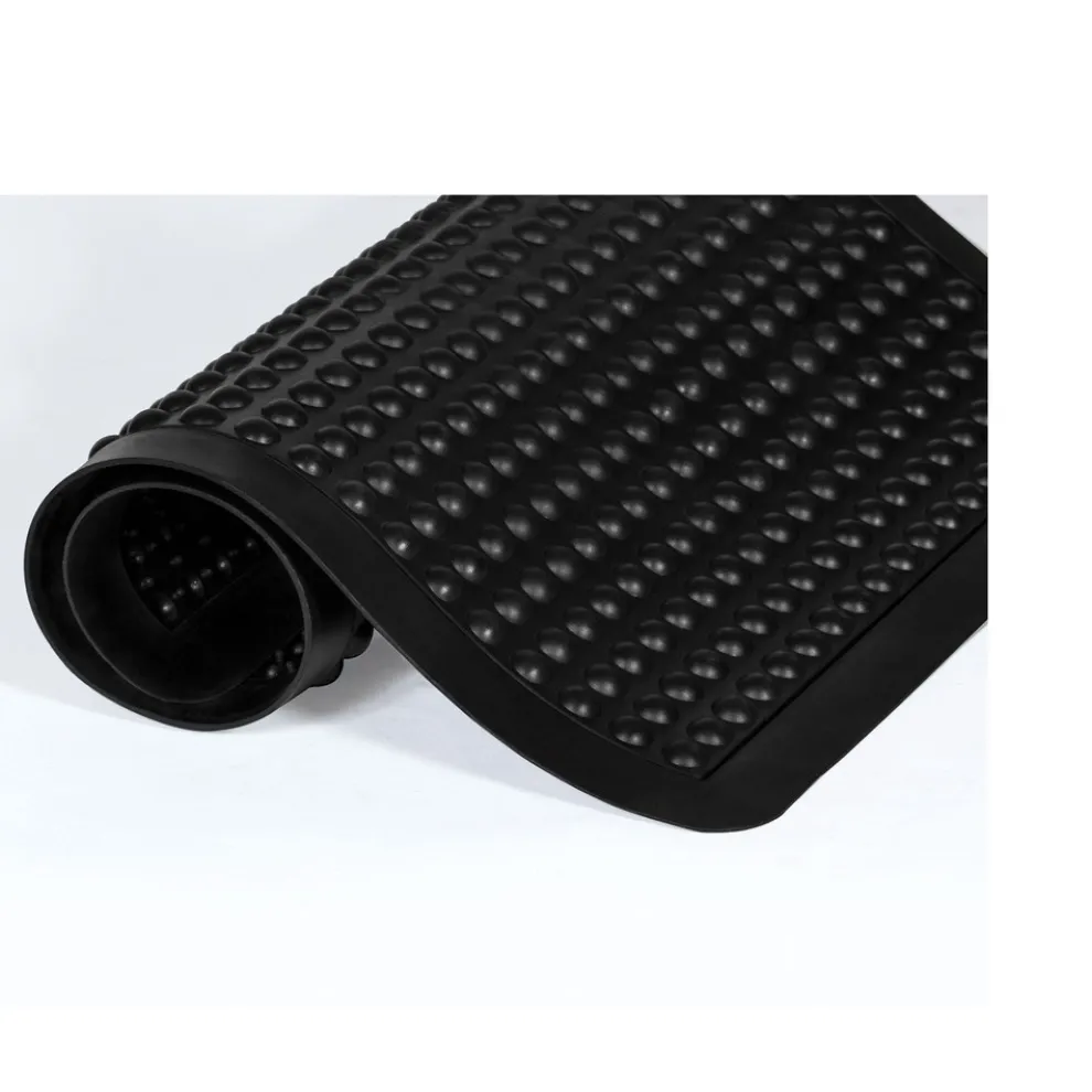 Yoga-Flex is a classic bubble anti-fatigue top surface mat that effectively stimulates leg and calf muscle movement. Bubble surface stimulates muscles and blood flow to reduce fatigue. The densely textured surface guards against slips and falls. Rolls quickly for easy cleaning and maintenance. Affordable solution for small commercial locations. High/low bubble surface encourages micro-movements that reduce fatigue and muscle pain. Tough rubber bubbles won’t collapse or break. Provides a heavy-duty solution for dry areas. Provides a heavy-duty solution for dry areas in factories, workstations, finishing and assembly stations, and shipping/packaging areas.