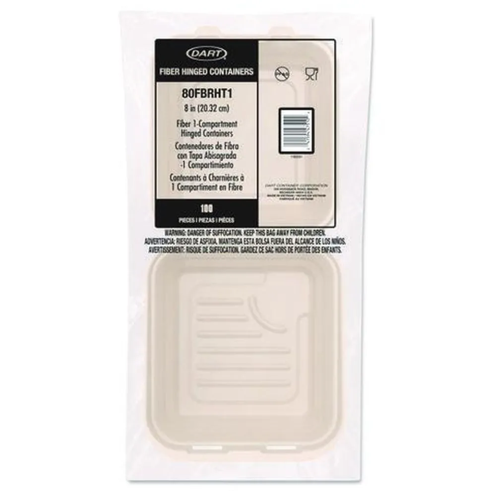 Dart 80FBRHT1 8.65 in. x 7.94 in. x 2.98 in. ProPlanet Seal Compostable Molded Fiber Hinged Trays – Natural (200/Carton)