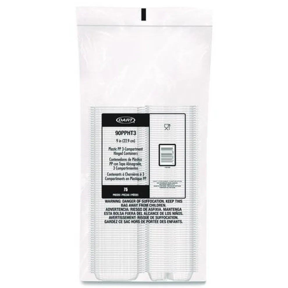 Dart 90PPHT3 9 in. x 8.75 in. x 3 in. 3-Compartments ProPlanet Microwaveable Plastic Hinged Containers – Clear (150/Carton)