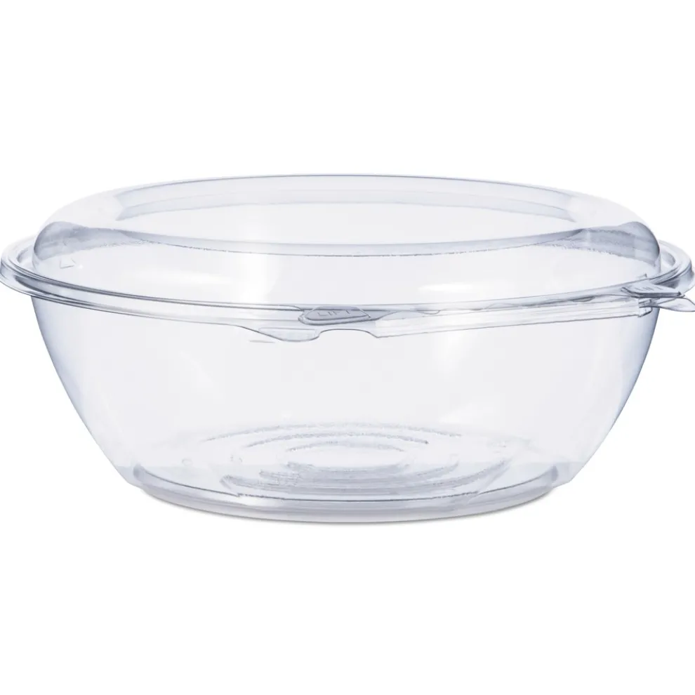 Dart CTR48BD 48 oz. 8.9 in. Diameter x 3.4 in. Height Tamper-Resistant/Evident Plastic Bowls with Dome Lid – Clear (100/Carton)