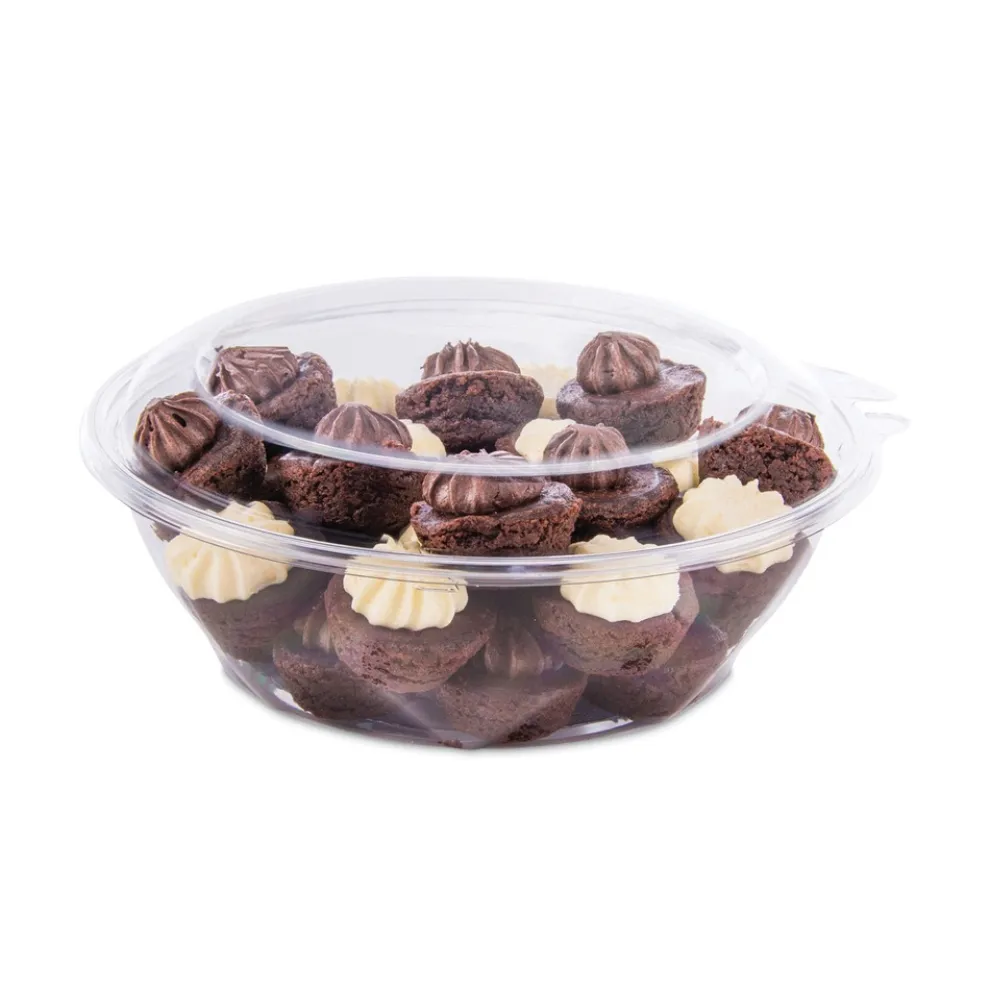No matter what’s inside, these bowls keep your food safe, secure and looking good! Designed to prevent tampering without shrink bands or extra wrapping, SafeSeal bowls make sharing food easy. The complete perimeter seal preserves freshness and prevents leaks and spills. The tamper alert hinge has a visible seal that, if broken, makes it obvious the container has been opened. The specialty lid inhibits the ability to lift it from the base without tearing the hinge. Once the seal is broken, the now 2-piece container is easy to re-close and continues to be leak-resistant. Make sure your food is the star of the show with this crystal-clear material. Merchandise and transport with confidence thanks to the stable stacking design
