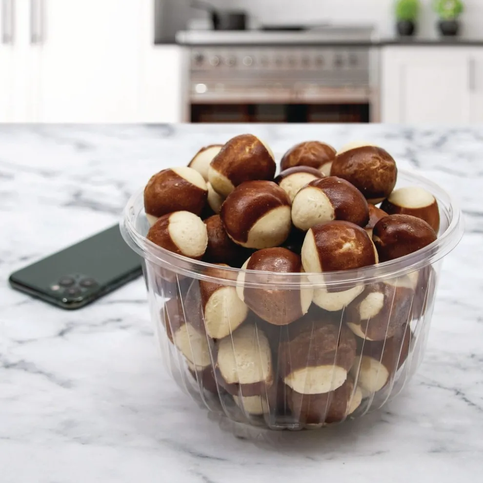 Curate a delicious deli menu with these 64 oz. clear plastic bowls. Showcase shareable produce, salads and baked goods. Create mouthwatering displays that highlight the delicious food inside. Reduce inventory with containers that withstand freezing temps while resisting cracks. Stack bowls to organize spaces and securely transport. Prevents sauces from saturating lettuce and toppings near the bottom thanks to the plastic bowl’s well design. Durable and lightweight, these versatile 64 oz. plastic bowls will save time and money.