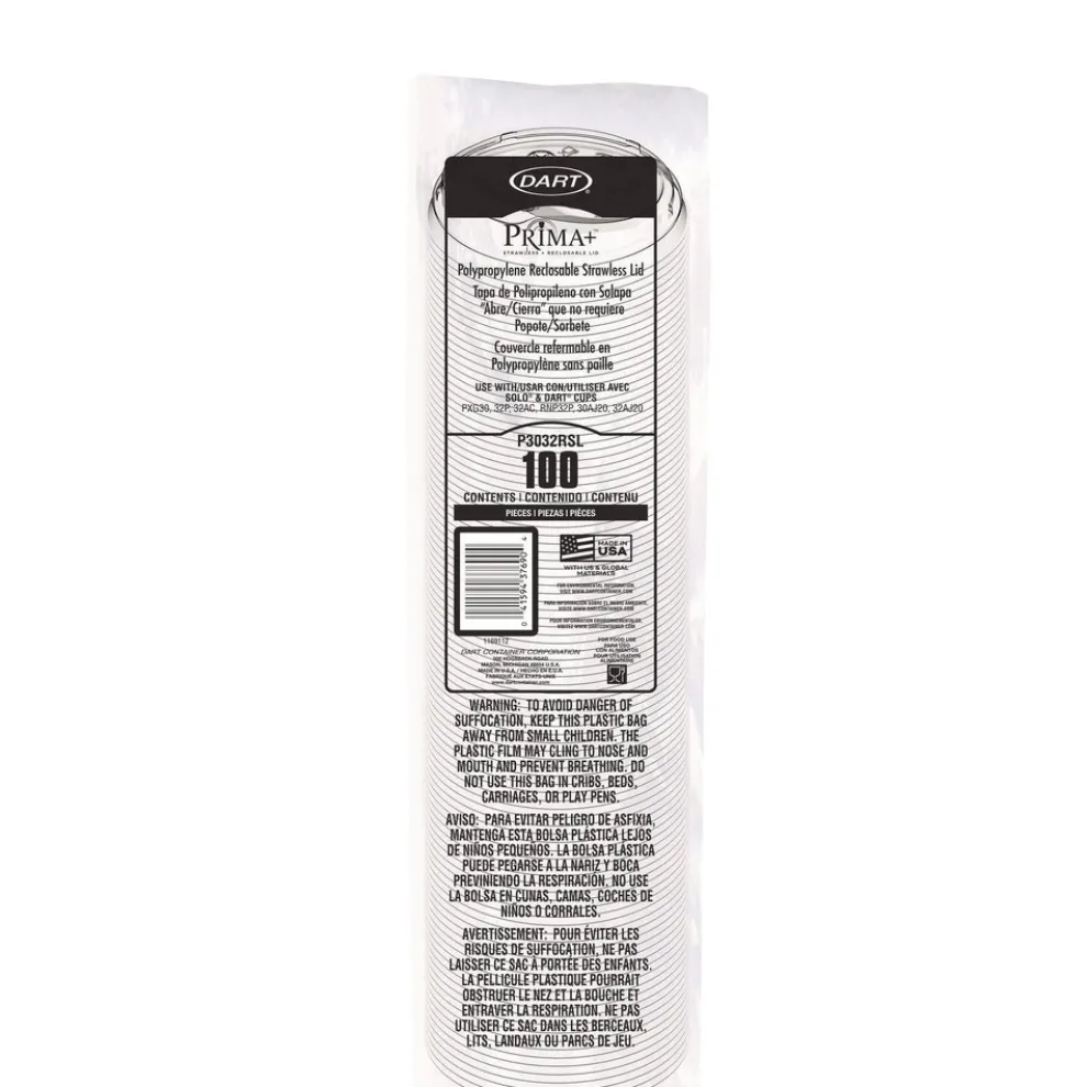 Dart P3032RSL Prima Strawless Plastic Lids Fits 30 oz. to 32 oz. Cold Cups – Clear (1200/Carton)