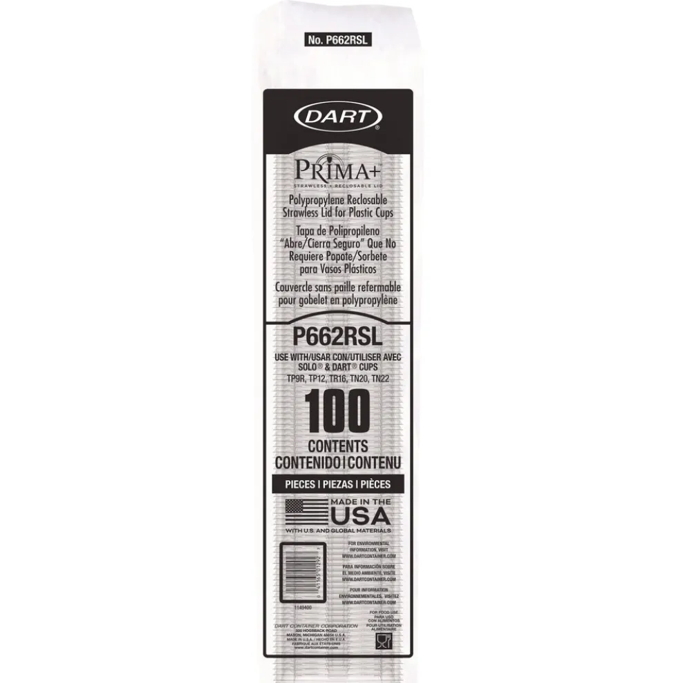 Dart P662RSL Prima Strawless Plastic Lids Fits 9 oz. to 20 oz. Cold Cups – Clear (1000/Carton)