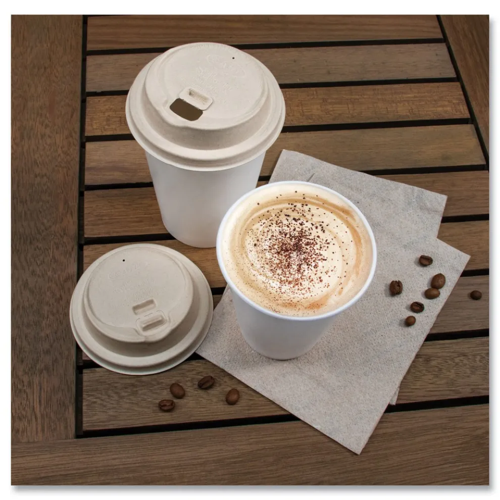 (1000/Carton) ProPlanet Seal Molded Fiber Lids for Paper Cups Fits 10 oz. to 24 oz. Hot Cups – Tan – LK316FBR