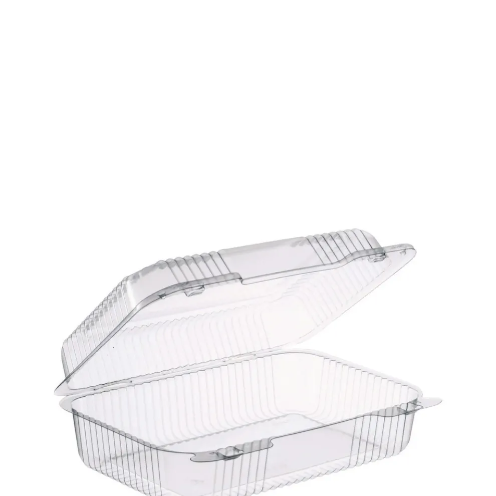 (250/Carton) StayLock 6.81 in. x 9.4 in. x 3.1 in. Oblong Plastic Hinged Lid Containers – Clear – C40UT1