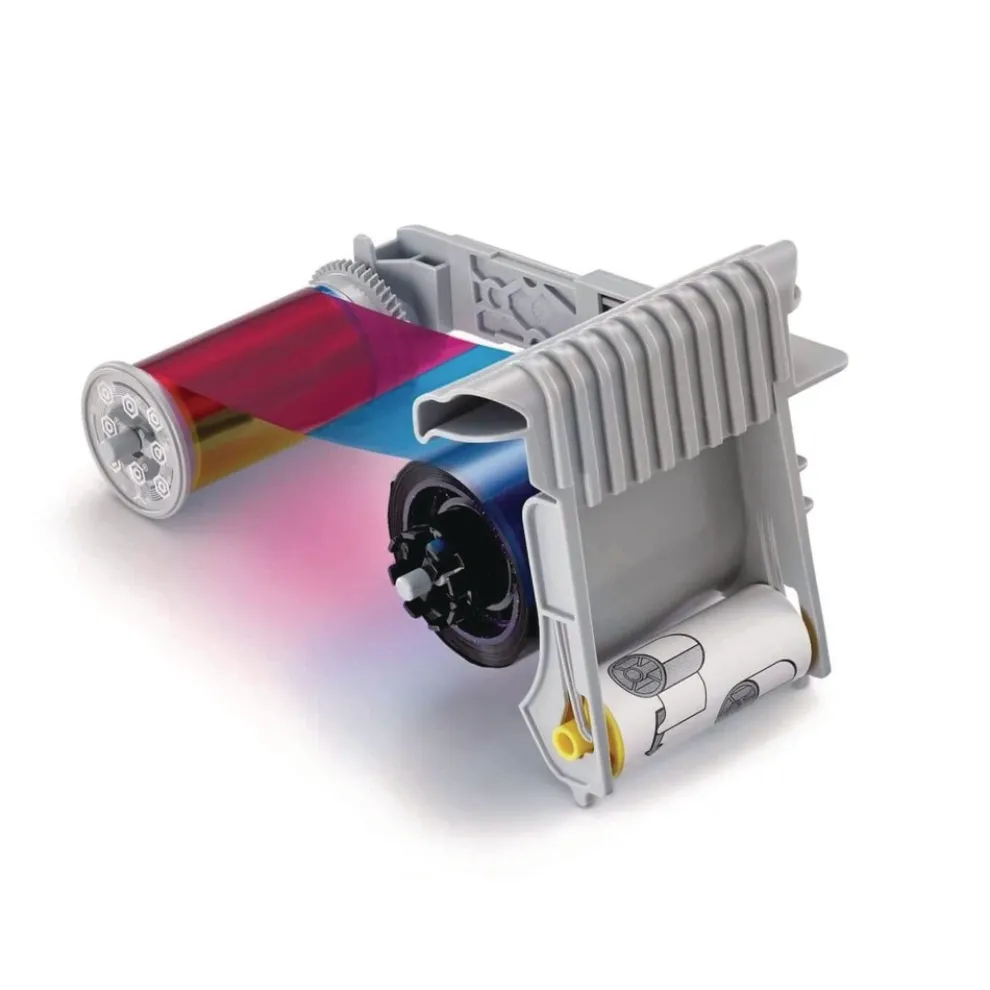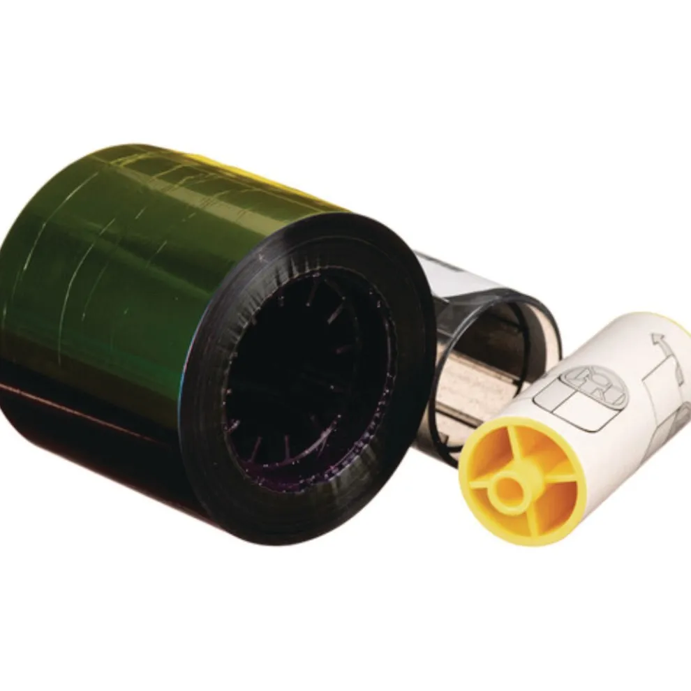 Entrust Datacard YMCKT-KT full-color ribbon includes full spectrum color overlay to protect against fading colors. This printer ribbon produces rich, full-color images and one-color barcodes or text on cards. For single-sided card printing or dual-sided printing. Entrust YMCKT-KT ribbons are used for printing a combination of full-color images and one-color text or barcodes. YMCKT-KT ribbons consist of yellow (Y), magenta (M) and cyan (C) panels for printing a full spectrum of colors by combining colors using varying degrees of heat. The two K panels are black resin, typically using for printing text and barcodes and the two T panels are thin, clear protective overlays. Each print kit includes one ribbon, one isopropanol cleaning card and one adhesive cleaning roller.