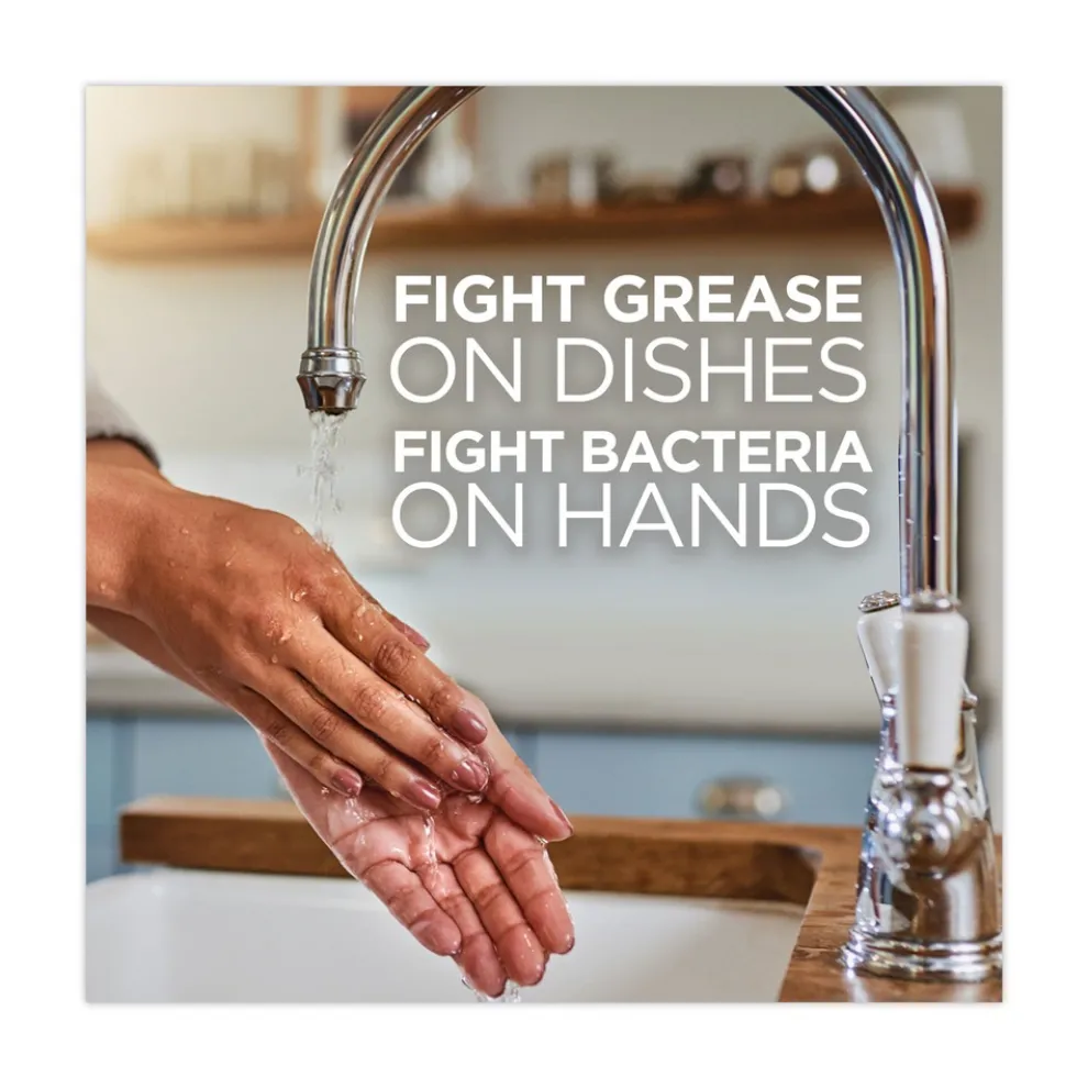 Fights bacteria on hands when used as a hand soap; fights grease on dishes.