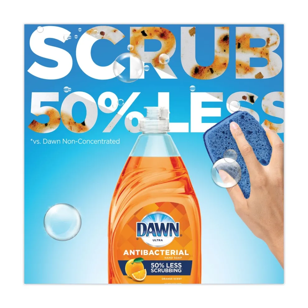 Think all dish soaps are the same? Think again. No matter what you’ve got cooking in the kitchen, Dawn Ultra Antibacterial hand soap gets rid of the bacteria you can’t see on your hands. Removes 99% of bacteria on hands when used as a hand soap. It also can be used to fight grease on dishes with Dawn’s legendary grease-fighting benefit. Get your ultimate clean and be the kitchen hero with 50% less scrubbing needed versus Dawn Non-Concentrated. Dawn works harder so you can get back to spending quality time with your family. Dawn Ultra’s powerful formula helps you get through more dishes with less dishwashing liquid versus Dawn Non-Concentrated. Made with biodegradable surfactants. #1 Dishwashing liquid brand in North America based on sales.