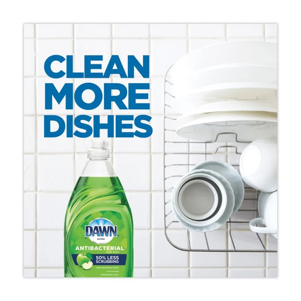 Think all dish soaps are the same? Think again. No matter what you’ve got cooking in the kitchen, Dawn Ultra Antibacterial hand soap gets rid of the bacteria you can’t see on your hands. Removes 99% of bacteria on hands when used as a hand soap. It also can be used to fight grease on dishes with Dawn’s legendary grease-fighting benefit. Get your ultimate clean and be the kitchen hero with 50% less scrubbing needed versus Dawn Non-Concentrated. Dawn works harder so you can get back to spending quality time with your family. Dawn Ultra’s powerful formula helps you get through more dishes with less dishwashing liquid versus Dawn Non-Concentrated. Made with biodegradable surfactants. #1 Dishwashing liquid brand in North America based on sales.