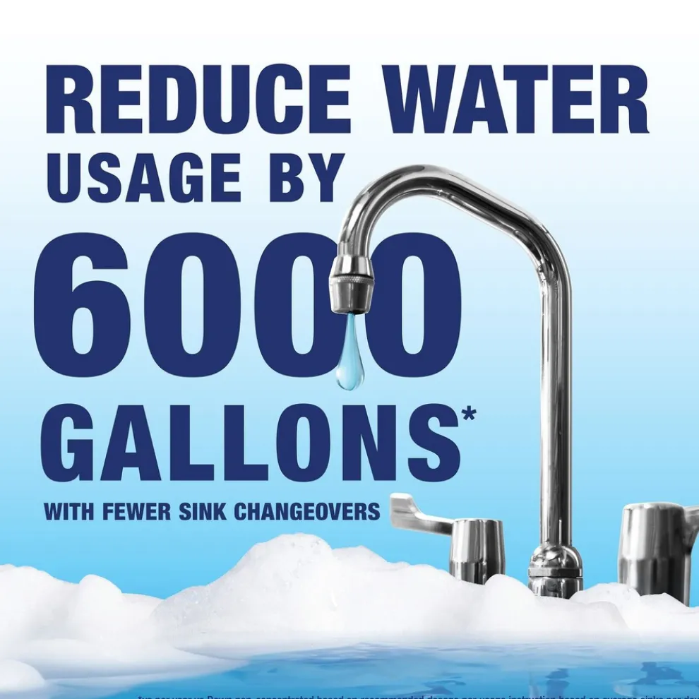 Dawn Professional dishwashing detergent with long-lasting suds cleans 58% more greasy pots and pans per sink (vs. Dawn non-concentrated)