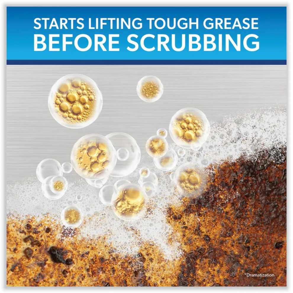Dishwashing detergent with long-lasting suds cleans 58% more greasy pots and pans per sink vs. Dawn non-concentrated