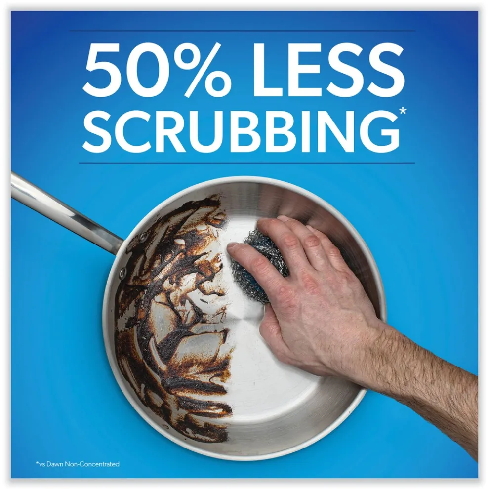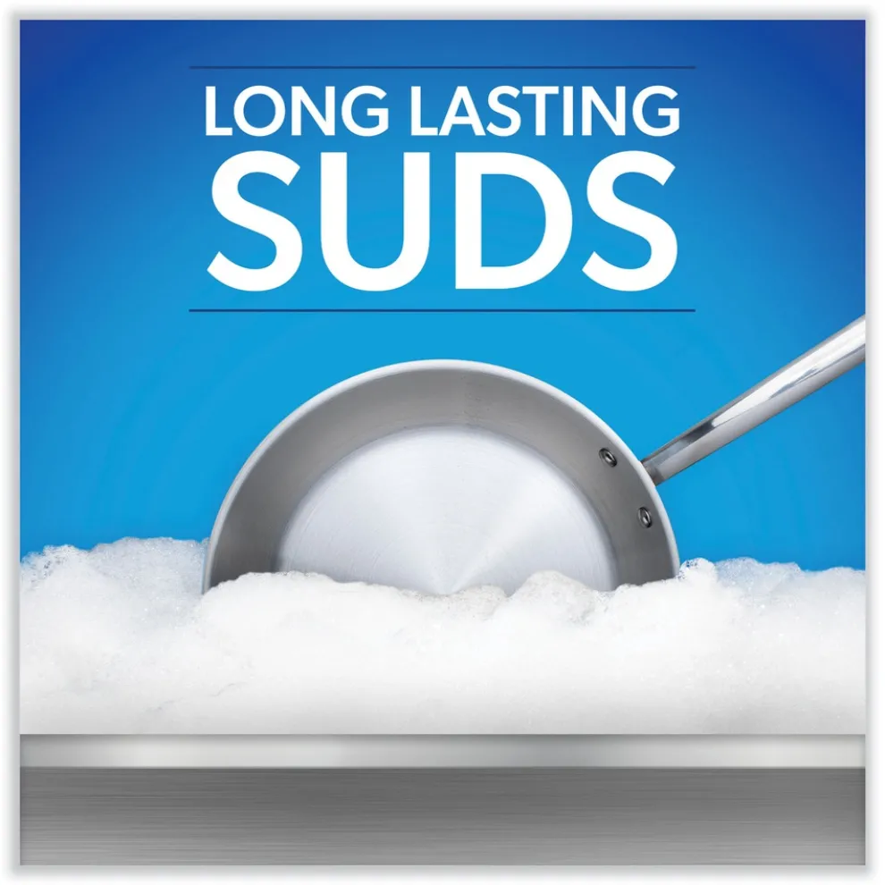Dishwashing detergent with long-lasting suds cleans 58% more greasy pots and pans per sink vs. Dawn non-concentrated