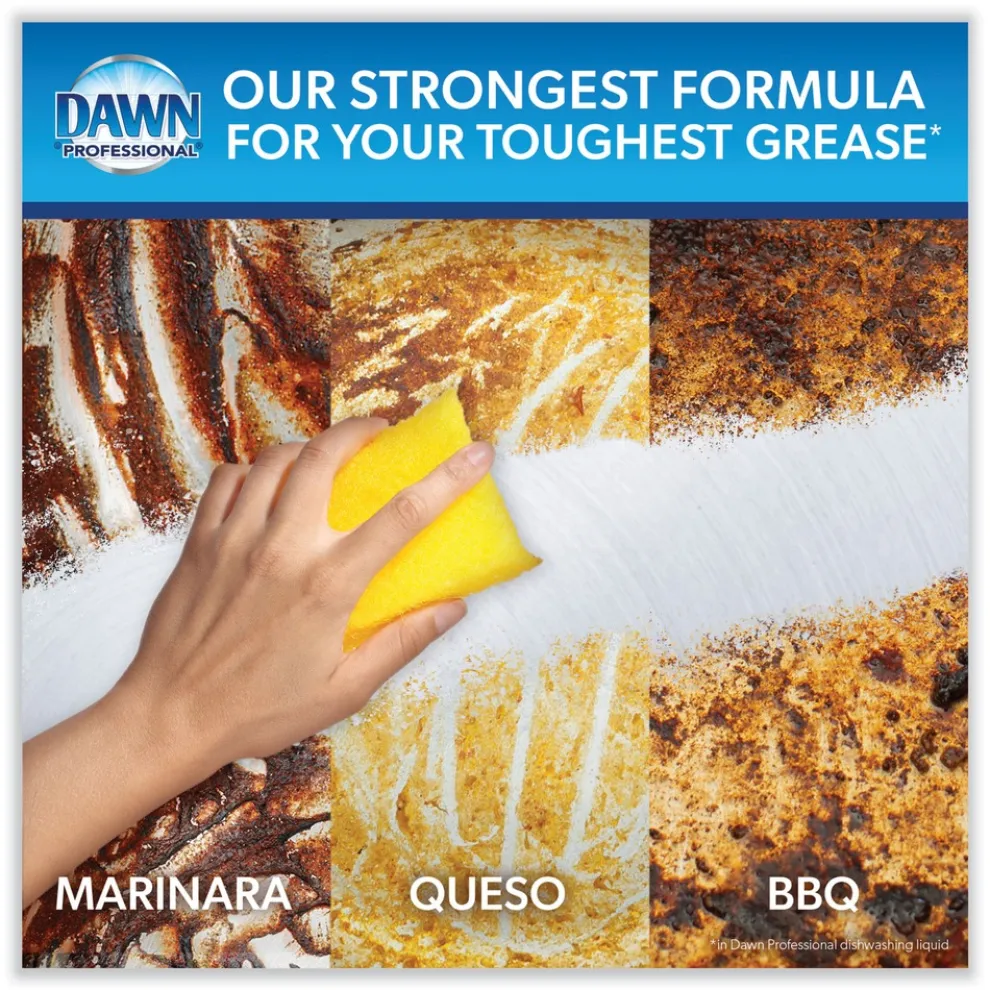 Dawn Professional Heavy-Duty Manual Pot and Pan Detergent is a highly concentrated liquid dishwashing soap that has the grease-fighting power of Dawn and is specifically formulated for tough jobs at your business. This liquid dish soap is specially formulated to help remove greasy food soils from pots, pans and utensils. Dawn dish detergent can work as an all-purpose cleaner for a variety of task areas, including three-compartment sinks (wash sink), countertops, dining areas, cooler doors, windows (outside and inside), portable equipment, trash receptacles, coffeemakers, drive-thru menu boards, and tile walls.