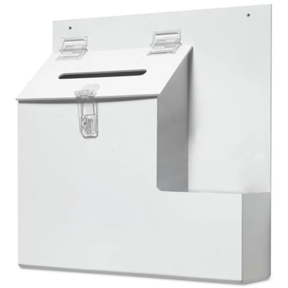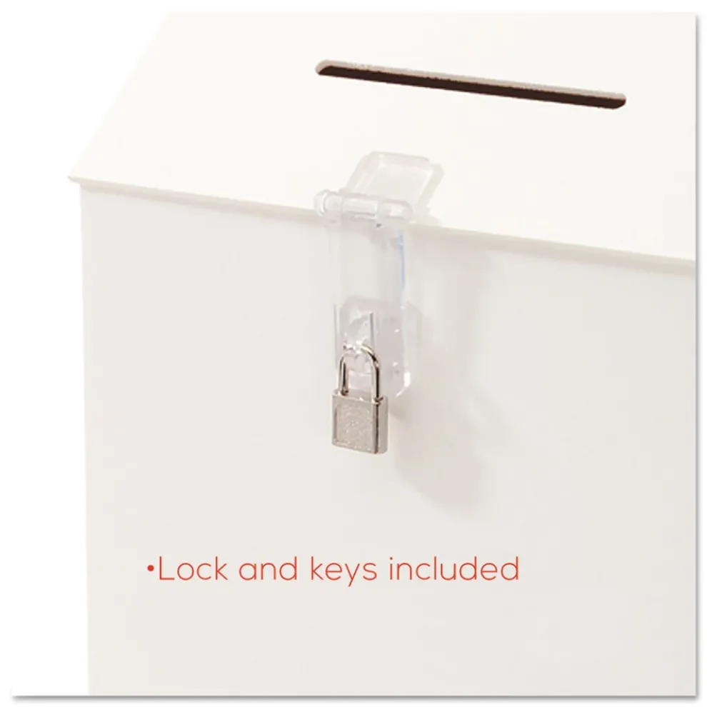 13.75 x 3.63 x 13.94 Plastic Suggestion Box Literature Holder with Locking Top – White – 79803