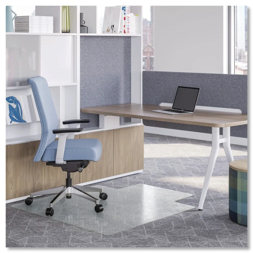 This lightweight chair mat functions best on low-pile and commercial carpets up to 0.25 in. thick