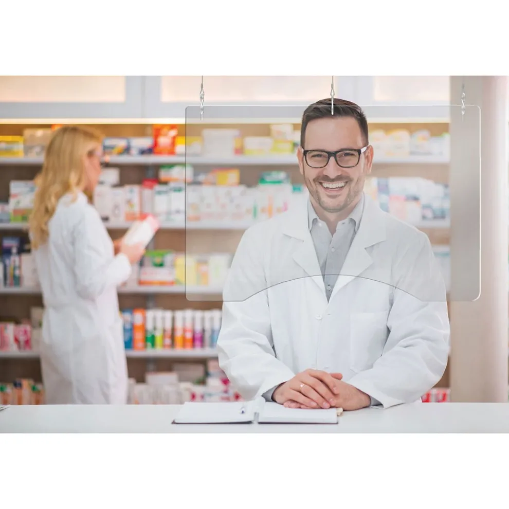 (2/Carton) 23.75 in. x 23.75 in. Acrylic Hanging Barrier – Clear – PBCHA2424