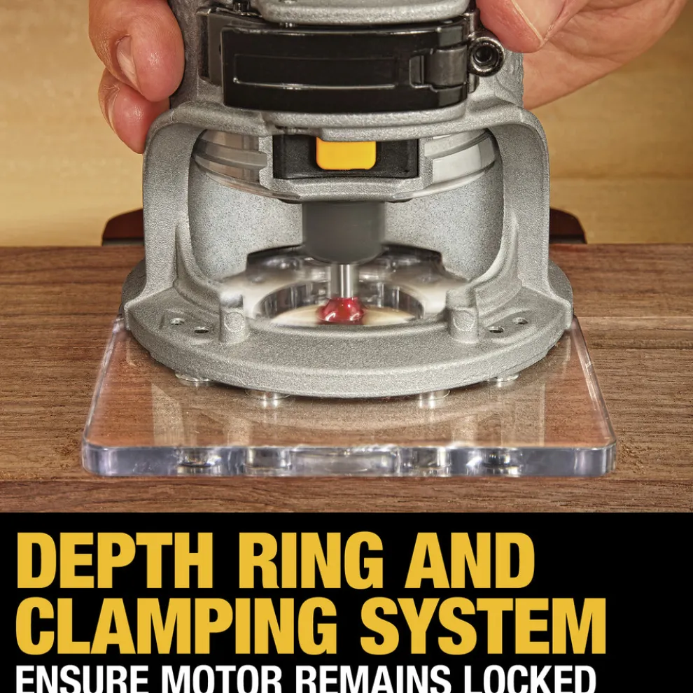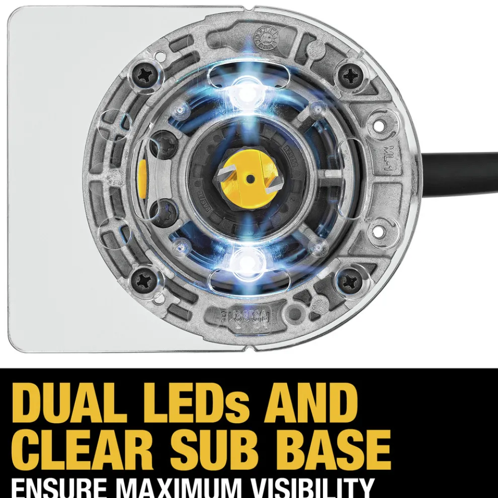 The DWP611 1-1/4 HP Max Torque Variable Speed Compact Router with LED’s has a 1-1/4 HP motor to deliver power for the toughest applications, and variable speed control for optimal bit speed in each application. Allows quick and easy bit and base changes. LED light and clear plastic fixed base provide superior bit visibility.