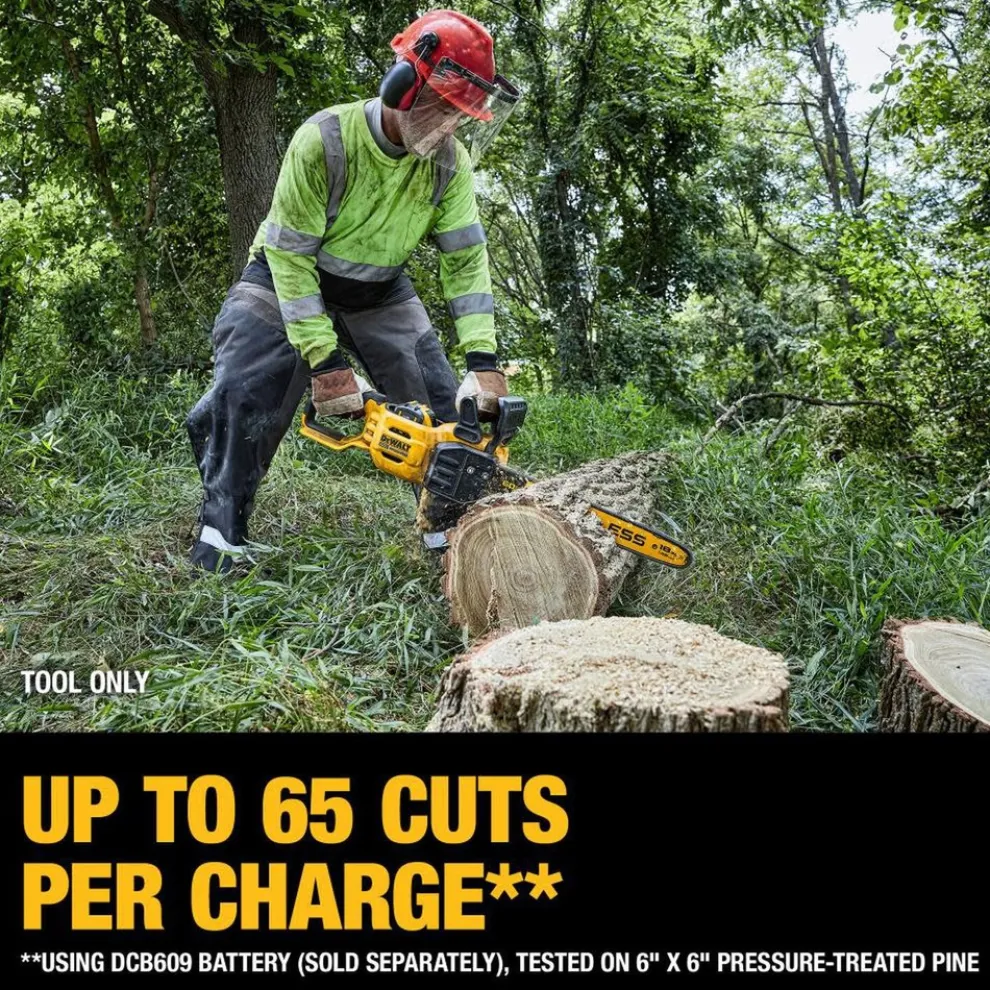 FAST CUTTING THROUGH THICK WOOD: Cuts through 17 in. white oak log as fast as 24 seconds using DCB609 battery, (sold separately)