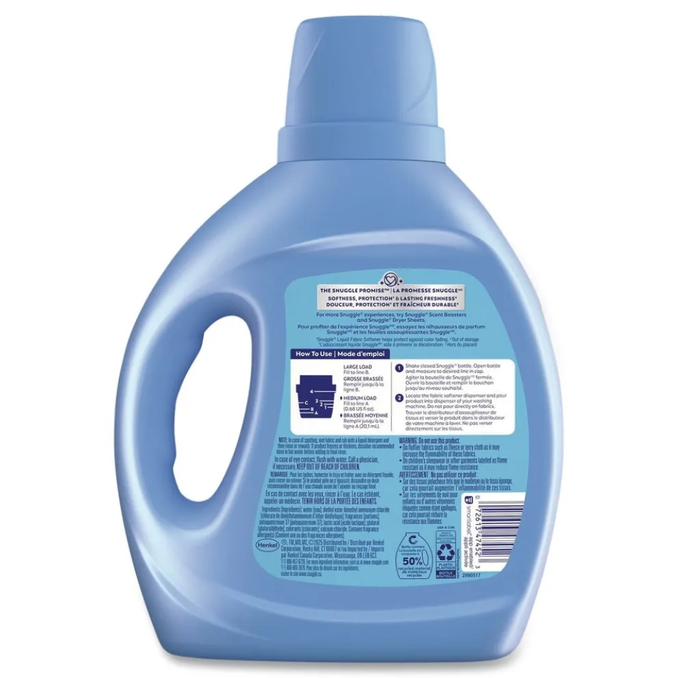 Liquid fabric softener offers Snuggle softness and a long-lasting, familiar fresh scent with every use.