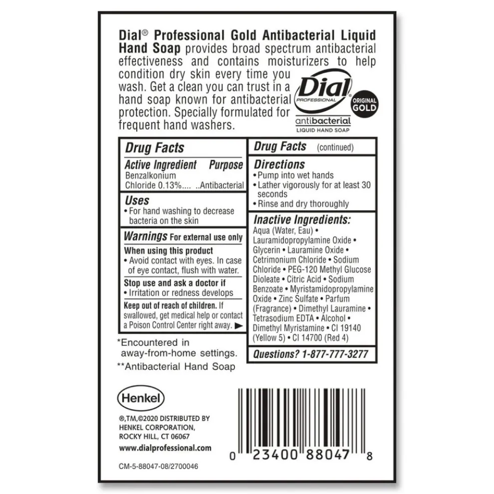 Dial Professional 88047 1 gal. Gold Antibacterial Liquid Hand Soap (4/Carton)