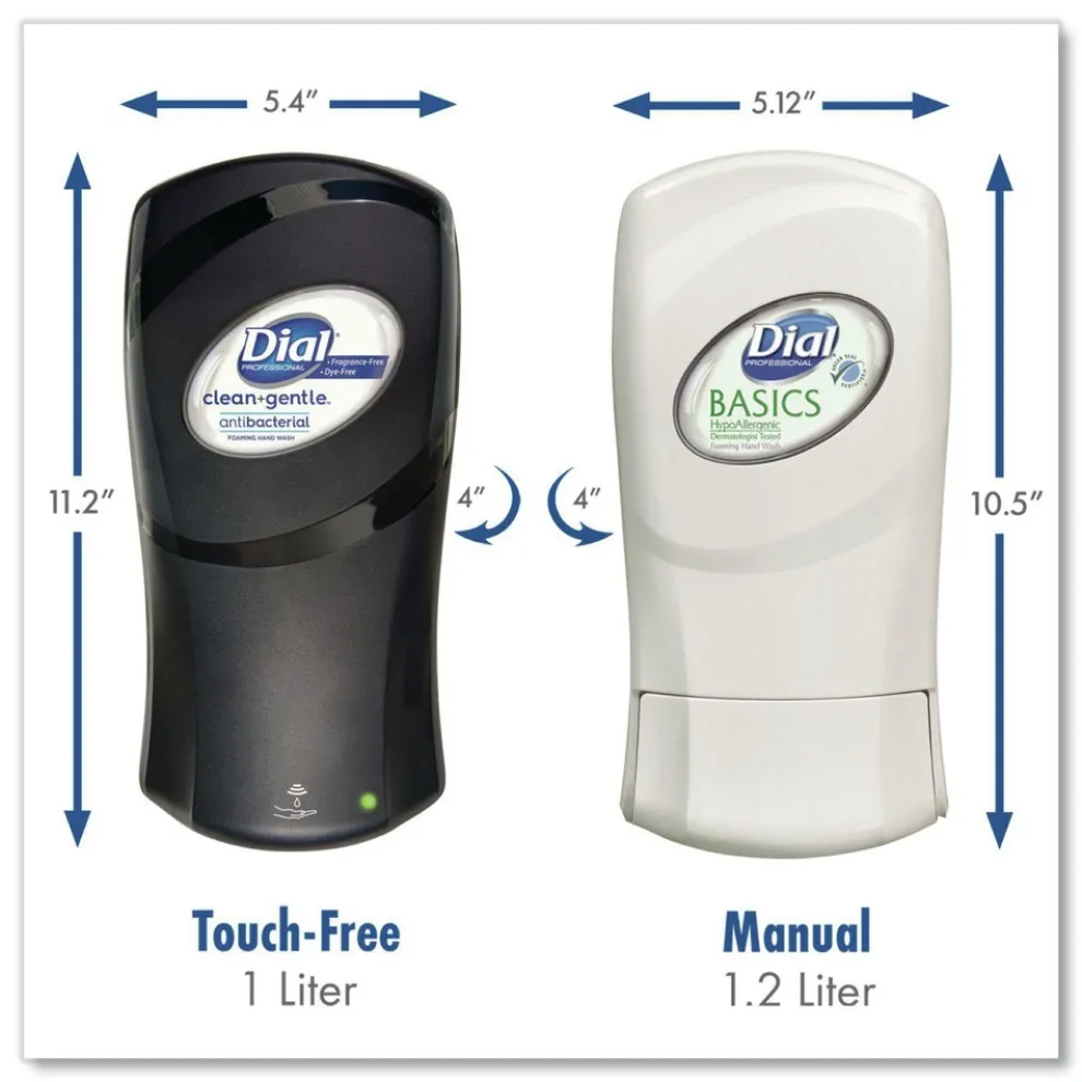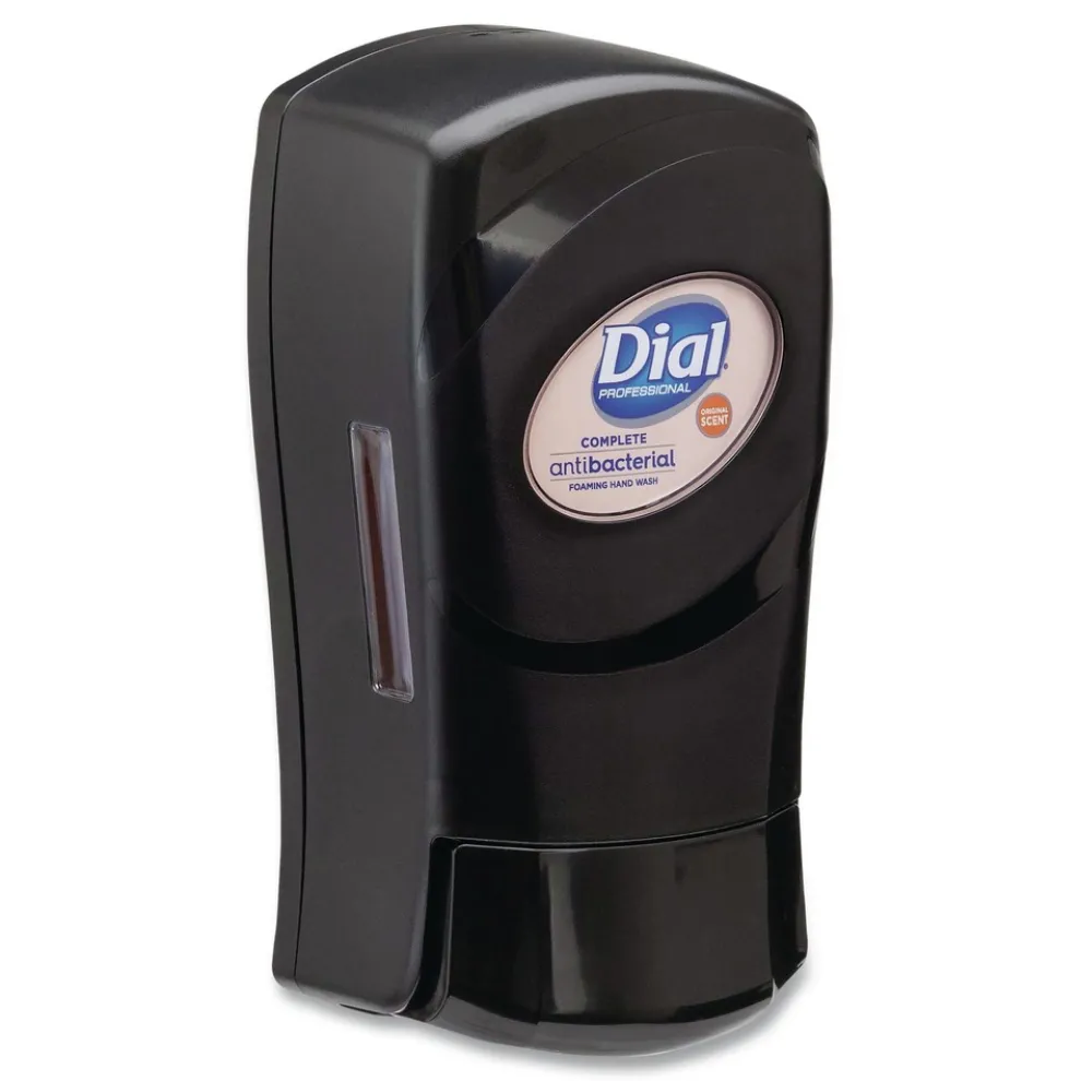 Dial FIT dispenser features the smallest footprint and cubic area in its class with subtle curves that complement the aesthetics of any washroom. Enjoy Thick, rich foam from our state-of-the-art pump. Dispenses 0.8 mL for at least 1,500 activations maximizing housekeeping efficiency. Clear side panel strip for fill-level visibility without opening. “Rapid Activation Restriction” prevents excessive output. Made from ABS plastic for maximum durability. Clean Tip Technology cleans the pump tip after each use to minimize drip risk.