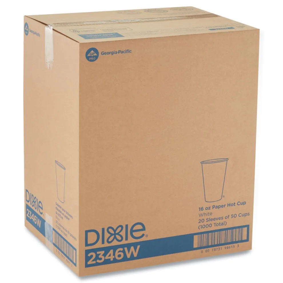 Dixie 2346W 16 oz. Paper Hot Cups – White (50/Sleeve, 20 Sleeves/Carton)